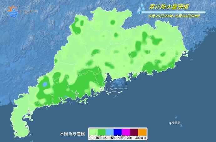 25日夜间起,副高东南侧东风波向西北方向移动,低层季风槽北抬,靠近粤西,从粤西和中南部市县开始,全省大部雷雨渐趋频密,高温稍有缓解。