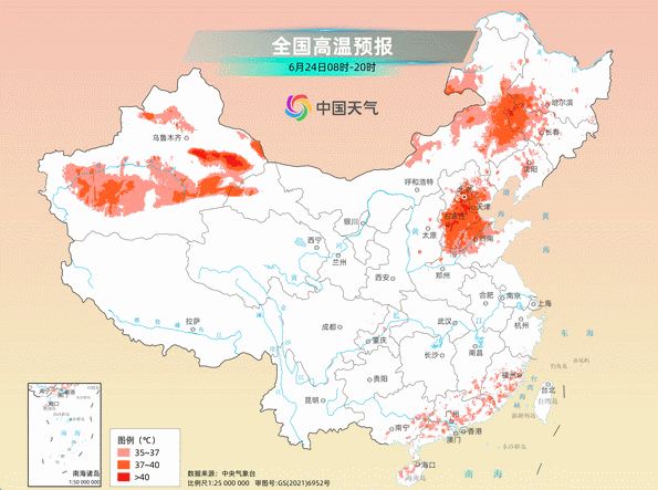 目前,一轮大范围高温天气正在影响我国,这两天东北等地将遭遇同期少见的连续高温,新疆、河北中南部局地气温可达40℃以上。