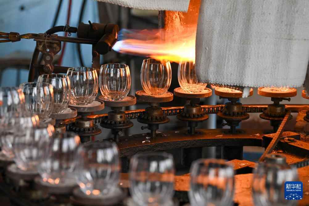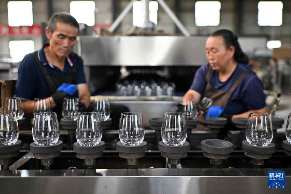 位于山西省祁县的山西宏艺玻璃器皿有限责任公司生产线一景(6月12日摄)。