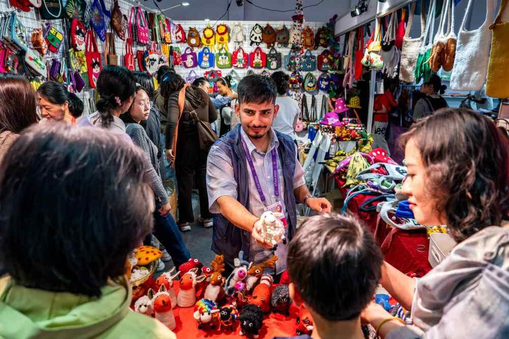 6月21日,第9届中国—南亚博览会南亚馆尼泊尔展区的参展商向观众推介特色商品。