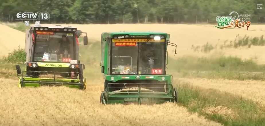 这是山东滨州国家农业科技园的麦田,联合收割机正在田间穿梭。饱满的麦粒倾斜而下,经过丈量、机收脱粒称重、水分测定、杂质率测定等环节,新品种的亩产达到了600多公斤,属于轻中度盐碱地的高产品种。