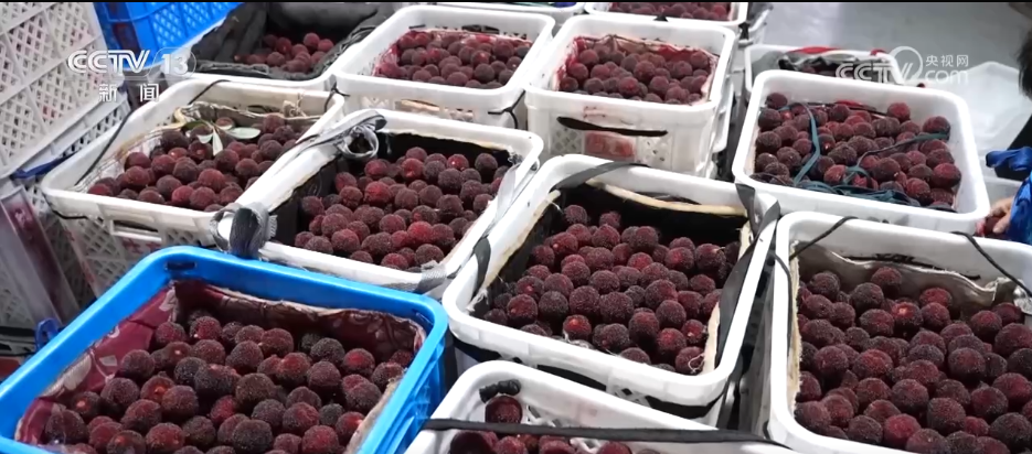 近日,浙江台州黄岩区5.6万亩东魁杨梅林迎来集中采摘高峰,深红饱满的果实压弯枝头,田间地头满是果农忙碌的身影。