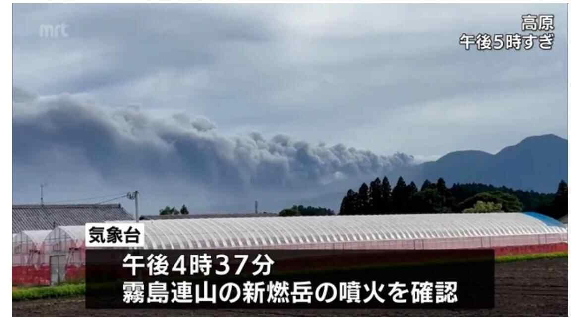 当地时间22日16时37分左右,位于日本鹿儿岛县和宫崎县交界地区的雾岛连山的新燃岳火山喷发,火山灰柱高达500米。