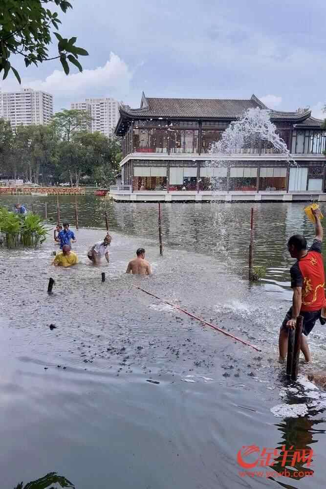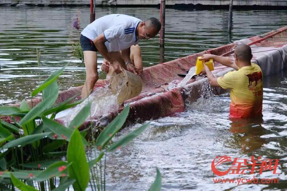 藏龙要将龙船的两个“龙船塞”拔出,然后用沙包把龙船压在湖中的龙船架,让湖水和泥浸泡坤甸木龙船,防止龙船被晒裂干和氧化。