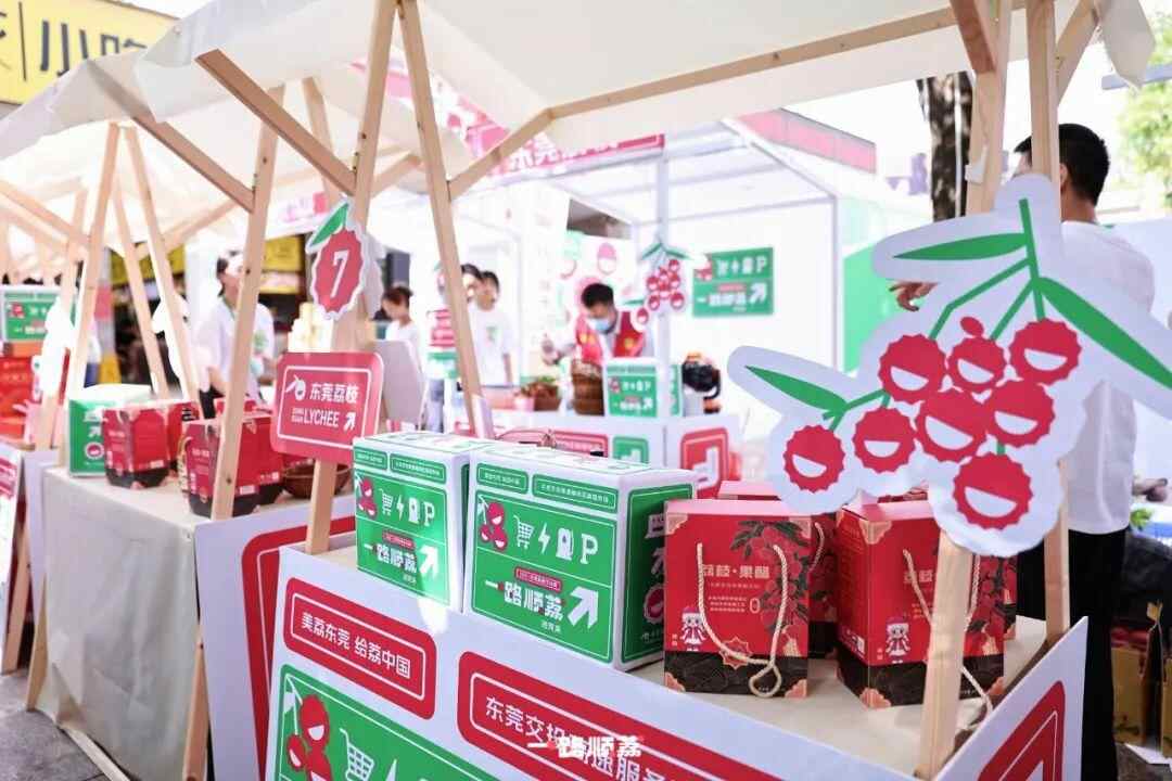 主会场大岭山服务区精心打造大型创意市集,这里不仅是新鲜荔枝的海洋,更汇集了琳琅满目的荔枝副产品、东莞烧鹅等美食,以及文创、潮玩产品。