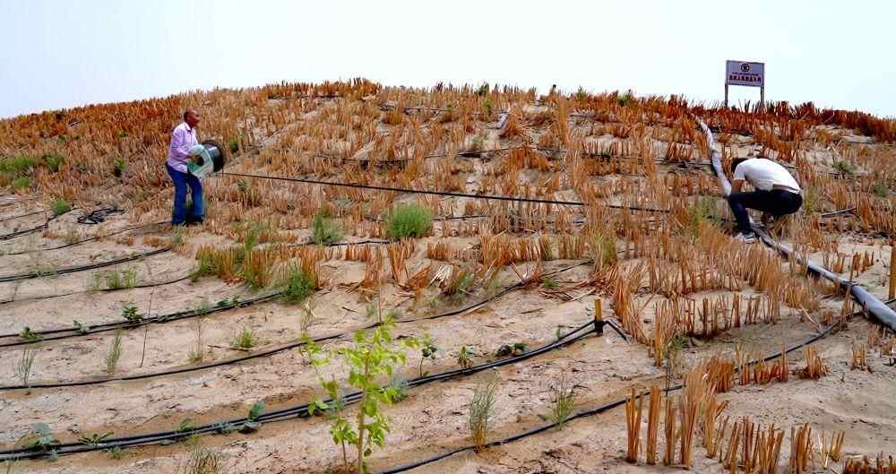 于田县奥依托格拉克乡喀拉库木什村村民艾买提江·艾则孜感慨道:“以前风沙一来,庄稼全被埋了,日子看不到盼头。现在政府把沙丘改造成梯田,还通水通电,每亩年承包费才33元。我种梭梭嫁接肉苁蓉,3年后每亩预计增收3000元,这沙子里真能‘长’出好日子。”