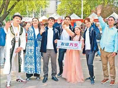 欢迎人群载歌载舞。陕西师范大学附属中学高二学生李国屹第一次来到哈萨克斯坦,他说:“坐着火车出境游,是一种特别的体验。”旅途中,他和同伴们欣赏壮美自然风光,体验非遗手工文化活动。火车抵哈后,随着西安—阿拉木图人文旅游交流周开启,李国屹所在的校园足球队与哈萨克斯坦足球少年进行了一场五人制友谊比赛。大家还一同逛人文集市、看文博考古交流展等。“这种沉浸式的文化体验,远比书本上的知识来得生动。”李国屹说。