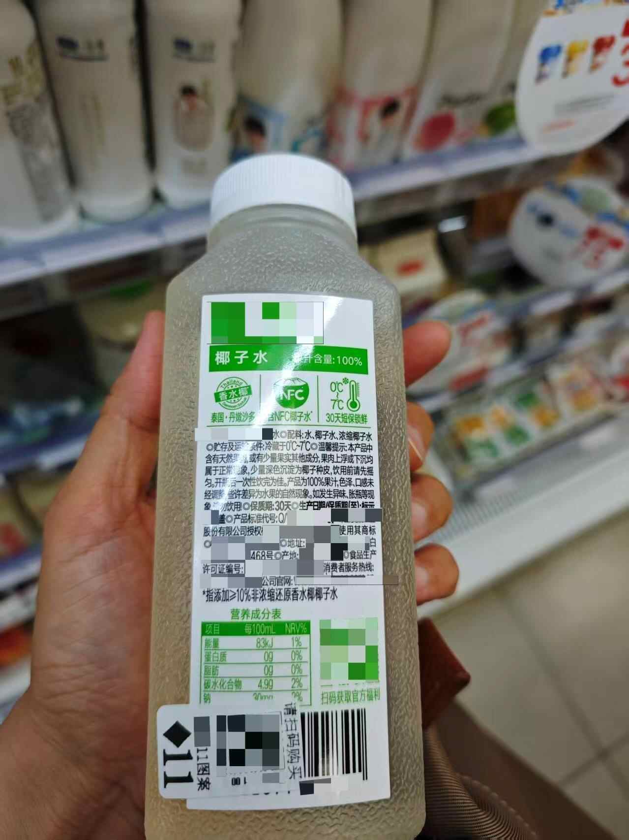 某饮料生产企业研发人员林伟鹏:NFC(非浓缩还原)饮料配料表一般只会写原料,比如写椰子水,不会有糖、香精这些添加剂。而这个浓缩还原饮料配料表就会写水、浓缩椰子汁,还有食用香精等添加剂。即使写了“100%果汁”,也可能是浓缩复原后的产物。所以我们如果要买好的椰子水,最好优先选择“无添加”“非浓缩”“纯椰子水”等明确宣称的产品。