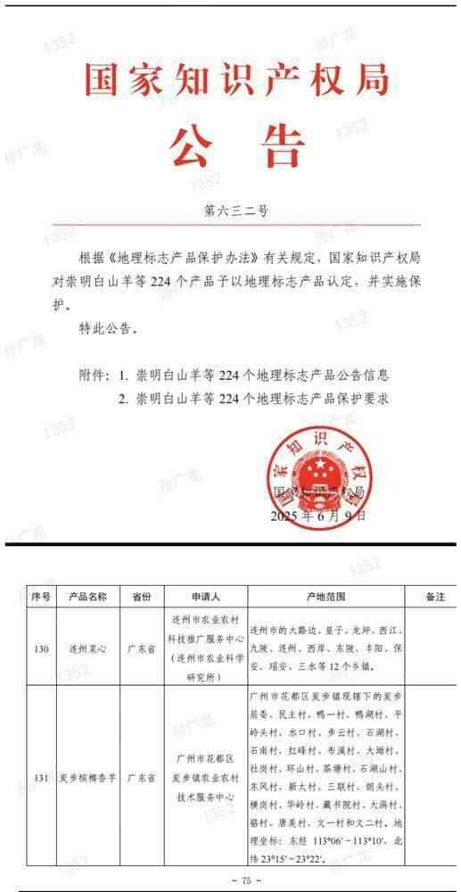 近日,国家知识产权局发布第六三二号公告,全国 224 个产品被认定为地理标志产品并实施保护。其中,广州市花都区“炭步槟榔香芋”为国家地理标志产品,并实施产地保护。这标志着花都区实现了地理标志产品“零的突破”,也是本次公告中广州市唯一被认定的产品。
