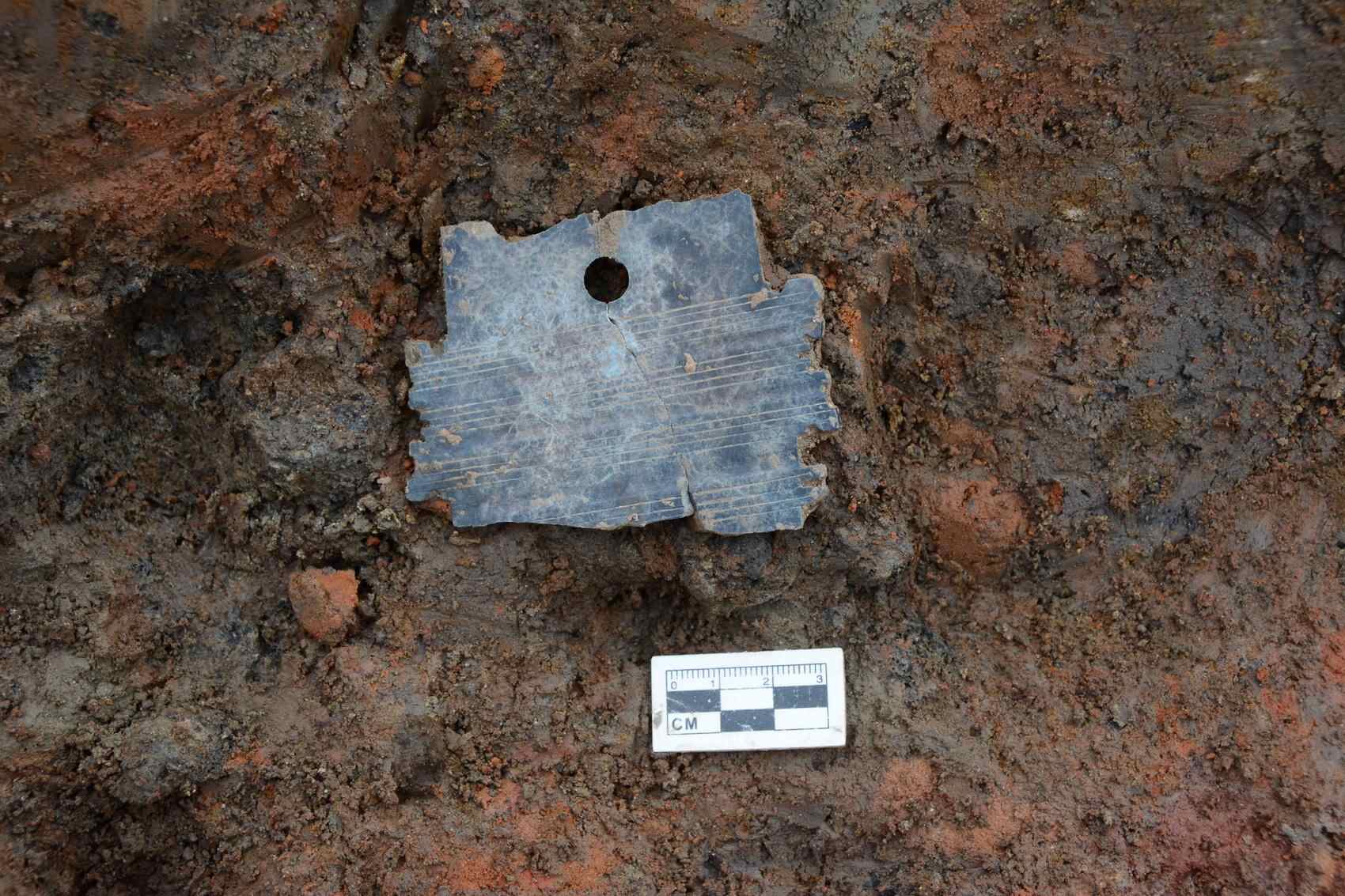 随着工作的推进,考古人员又在月亮湾小城东南部的燕家院子地点发现了一处人工堆筑的土台。“土台面积超过6000平方米,采用了斜坡堆筑的建筑方式,与月亮湾小城东城墙等基本一致。”乔钢介绍,尤其值得一提的是,燕家院子人工土台初步判断为多级土台,最上层土台上还发现了一处大型房屋建筑基址,面积超过200平方米,并且外围可能存在回廊。这处建筑基址的最大单间,目前已揭露了90多平方米。房屋基槽内的填充物则全是陶“板状器”,可以看出大多经过火烧、直立插入基槽,或许代表了木骨泥墙以外的砌墙工艺的出现。