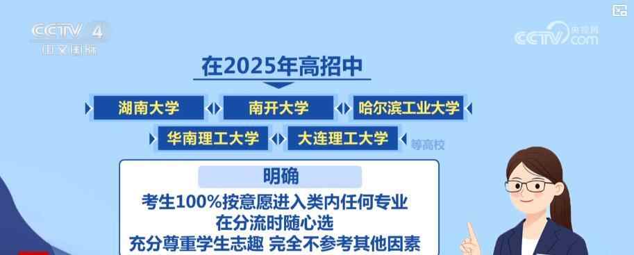 除此之外,一些高校也在改变大类招生的方式,回归具体专业招生或者“小类招生”,“小类招生”明确类内专业100%按意愿分流,增加考生选择专业的确定性。也有高校直接按具体专业招生,考生志愿填报即可锁定专业方向,避免二次分流的“顾虑”。在2025年高招中,湖南大学、南开大学、哈尔滨工业大学、华南理工大学、大连理工大学等高校都明确,考生100%按意愿进入类内任何专业,在分流时随心选,充分尊重学生志趣,完全不参考其他因素。