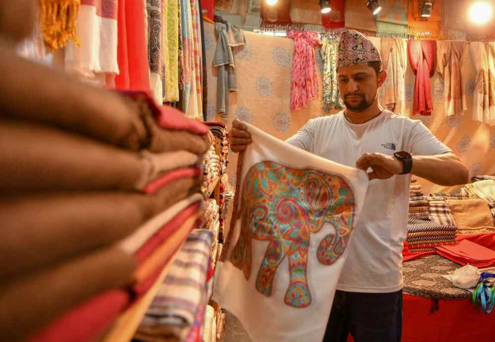 2025年6月18日,在第9届中国—南亚博览会,来自尼泊尔的参展商整理即将展出的商品。新华社发(彭奕凯 摄)