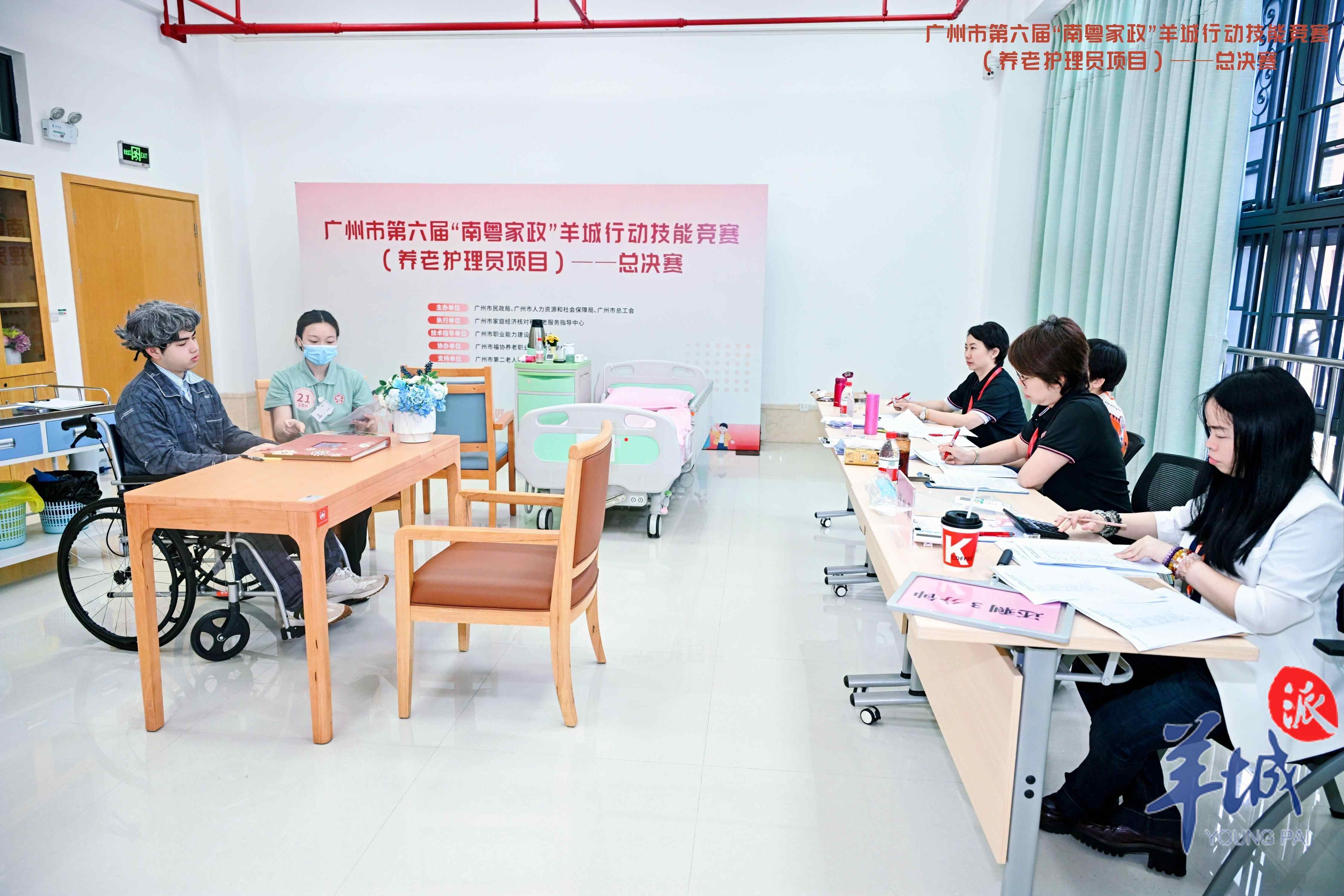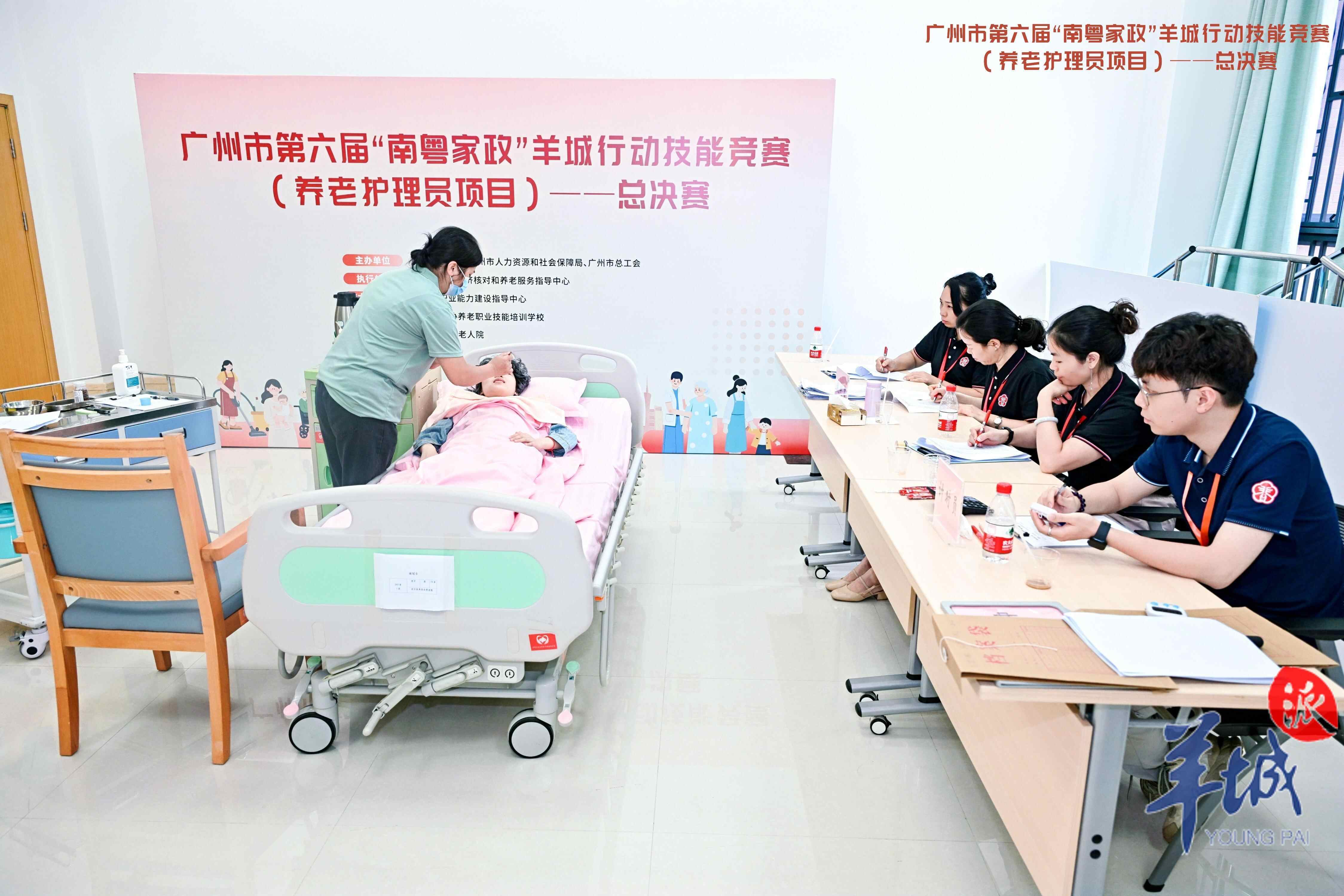 “爷爷,您平时对什么过敏吗?”“奶奶,我帮您调整一下房间的温湿度吧。”6月20日,广州市第六届“南粤家政”羊城行动技能竞赛(养老护理员项目)总决赛在广州市老人院开赛,面对居家、社区、机构三大典型模拟照护场景,39位工匠组选手(从业一年及以上)及11位在校学生新秀组选手展开PK。