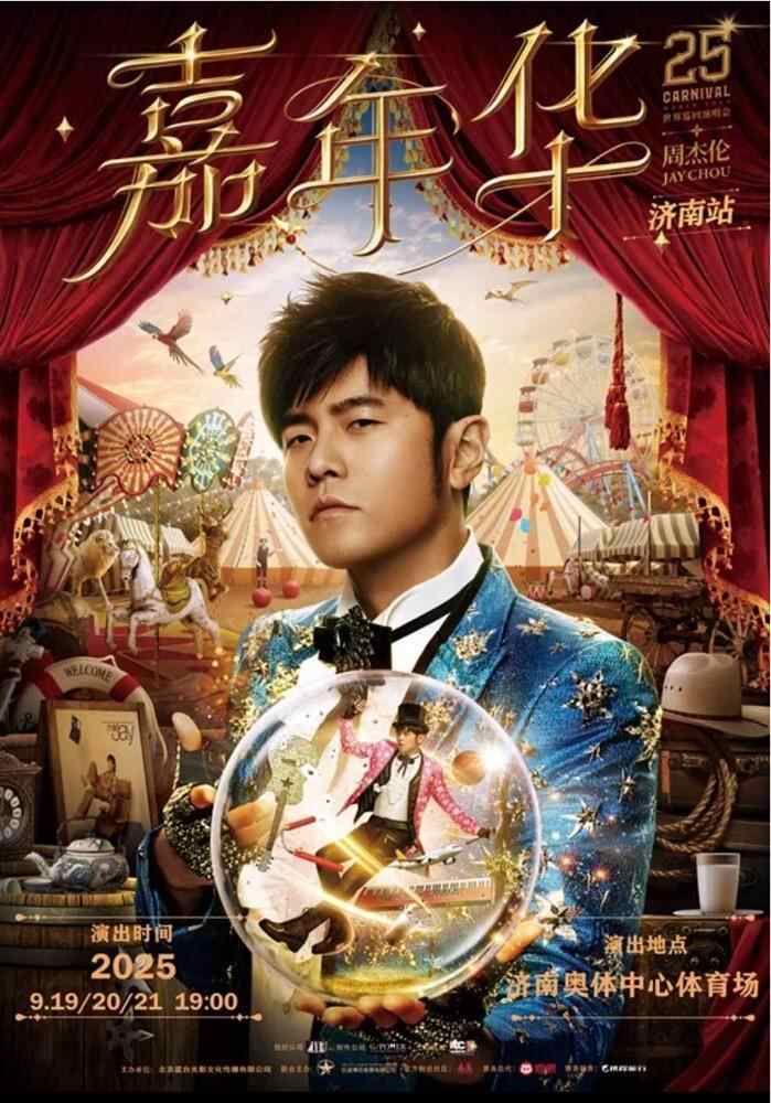 6月17日0点,济南奥体中心官方号发文:2025周杰伦“嘉年华”世界巡回演唱会-济南站正式官宣,时间为9月19日一21日,6月22日开售。
