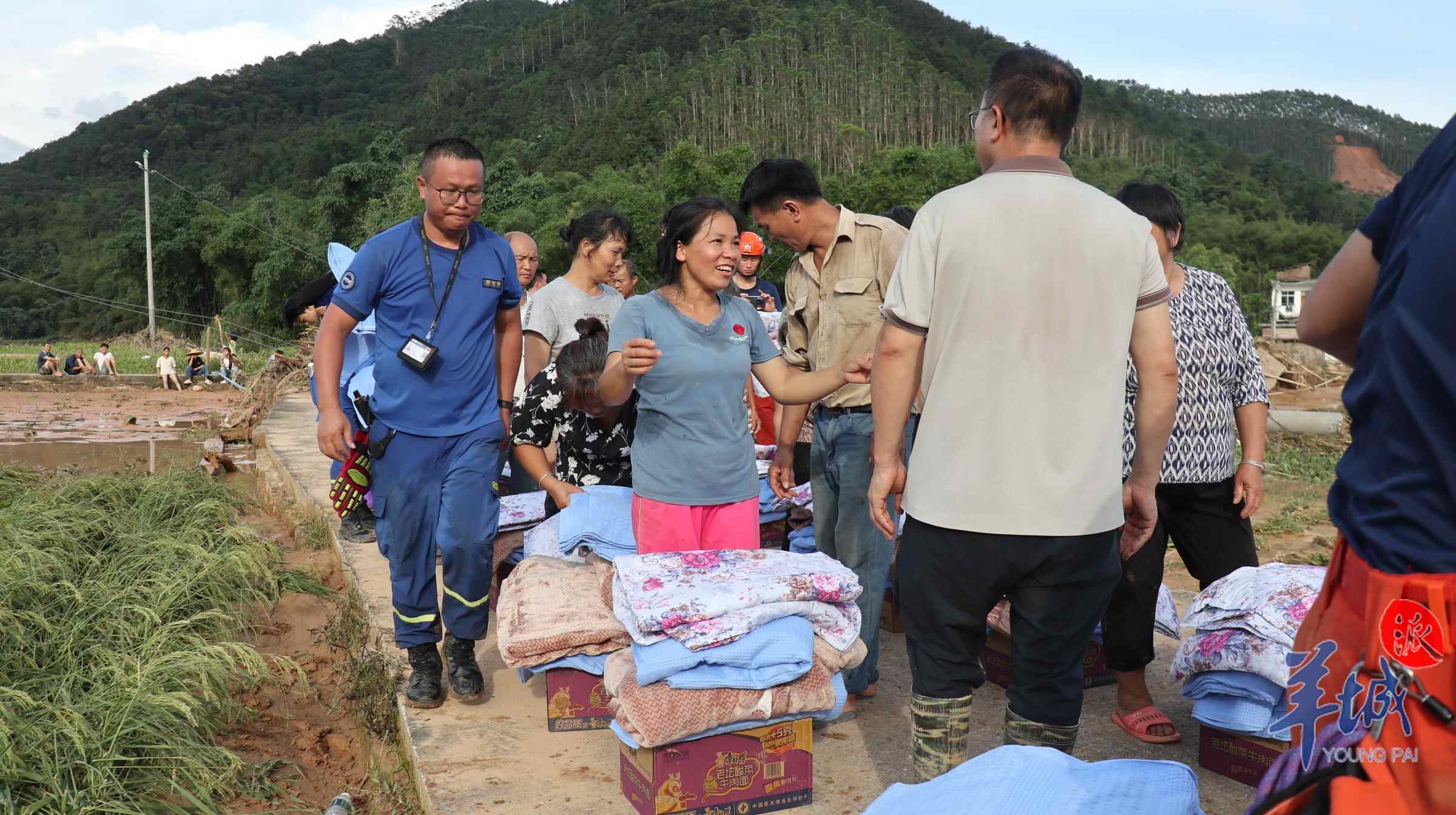 “谢谢救援队!我现在最缺的就是面,今天终于领到了。有了吃的,心里就踏实了。”村民莫杏珍抱着物资,向救援队员表达了真挚的感谢。