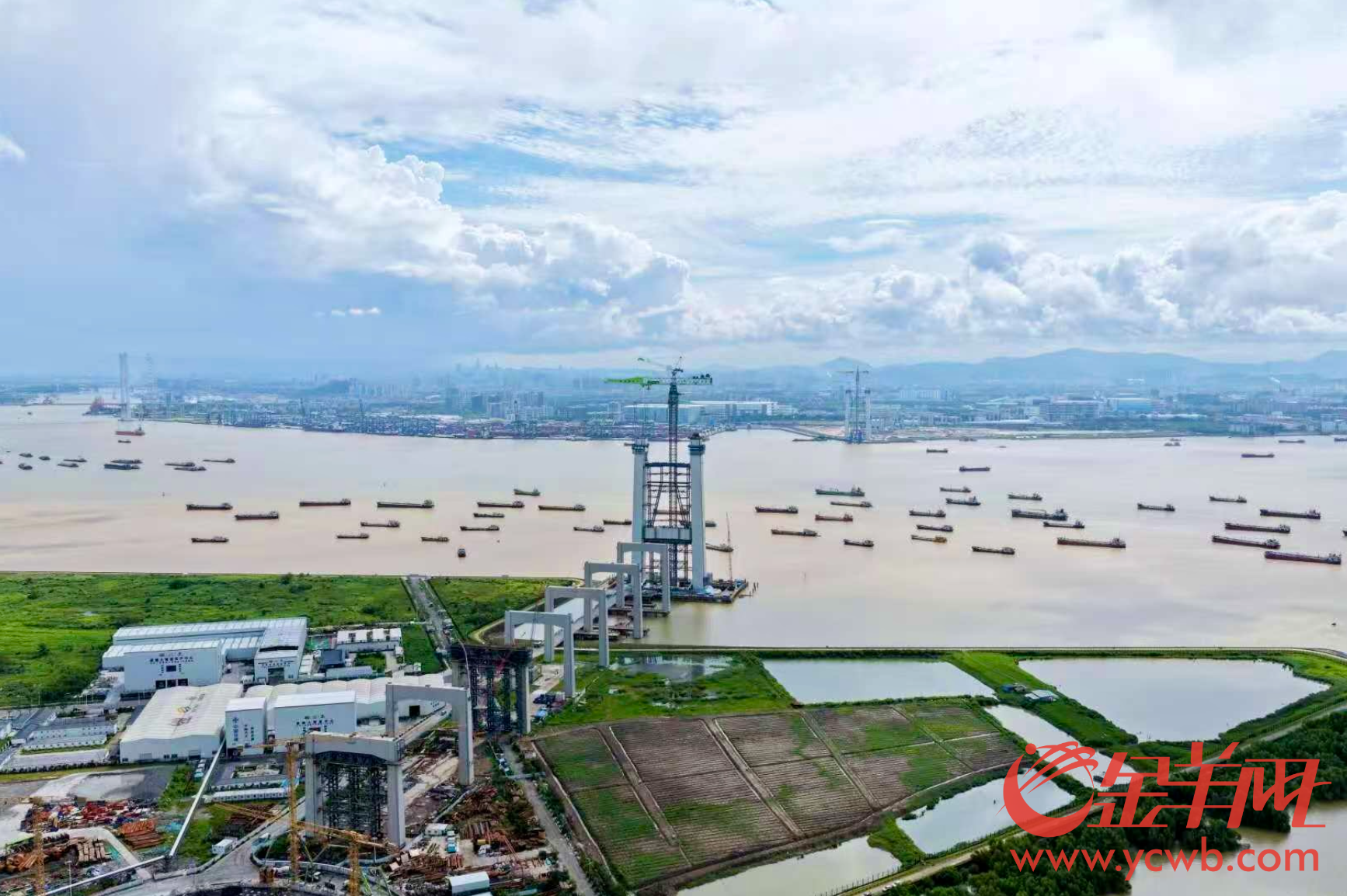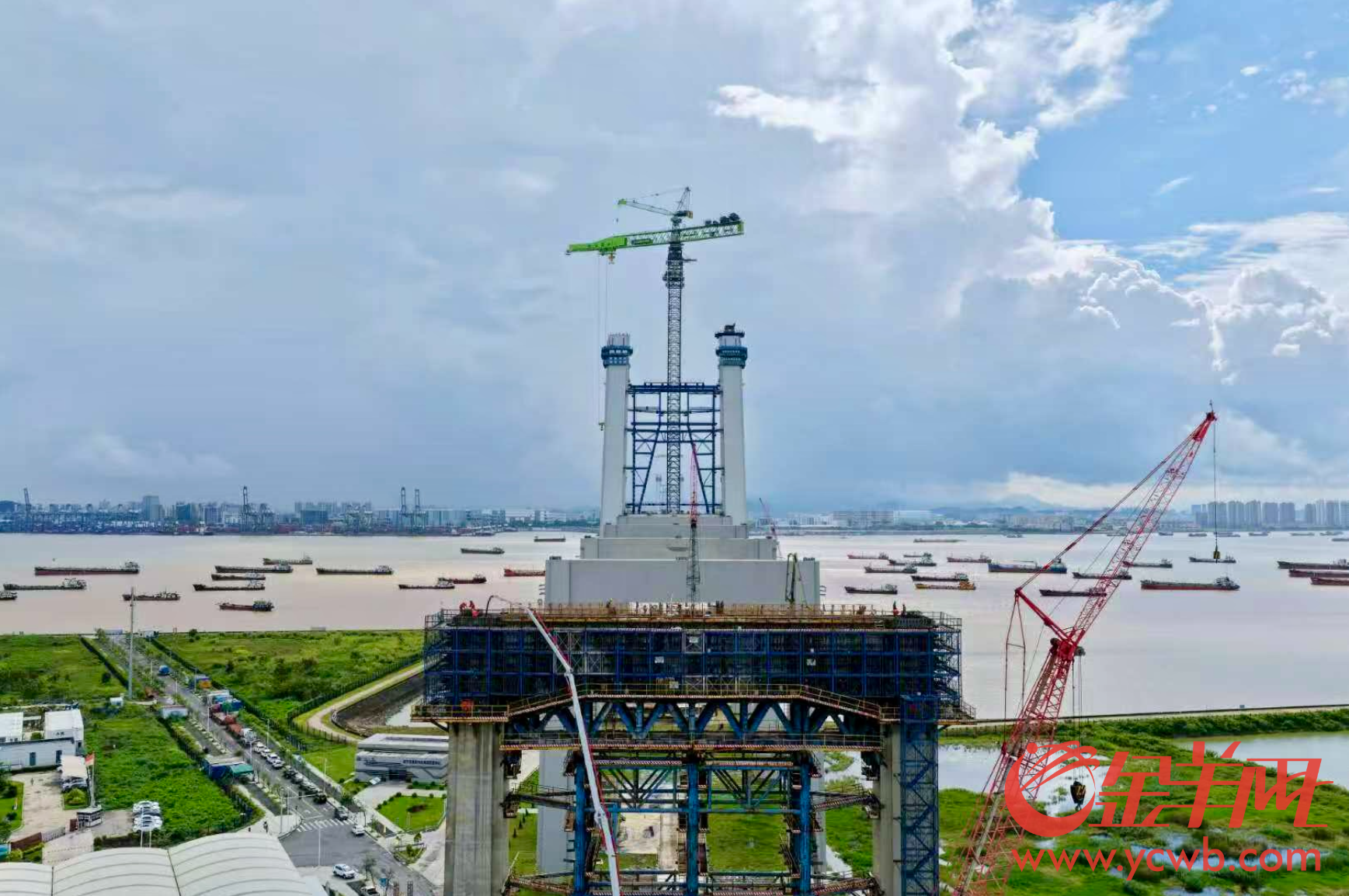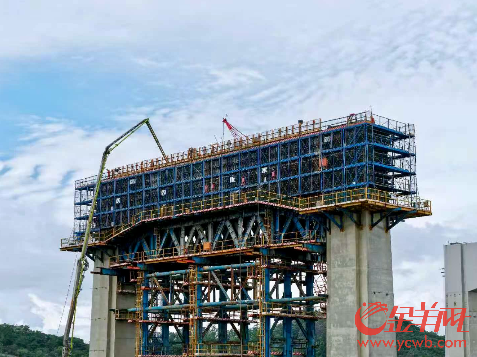 项目关键控制性工程狮子洋大桥,采用主跨2180米双层钢桁悬索桥的方案“一跨过江”,创下双层悬索桥五项世界第一。其中,西高墩区引桥是大桥的重要组成部分,位于西索塔与西锚碇之间,连接主桥过江段与引线工程,总长约793米,下部为双柱式门型结构,高度约48米到63米不等,由中交二航局负责建设。