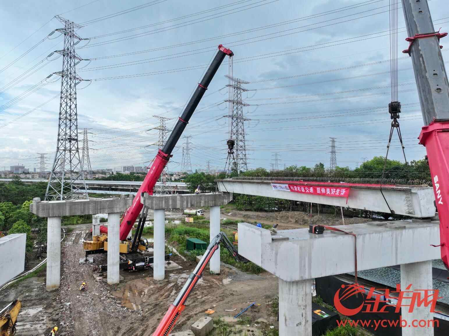 同日,由中铁十八局承建的狮子洋通道T4合同段完成首片预制梁架设。T4合同段全线长约2.3公里,共需架设3014片预制箱梁,此次成功架设的首片箱梁为狮子洋通道万洲互通H匝道第十跨第4号边梁,梁长30米、重90吨。