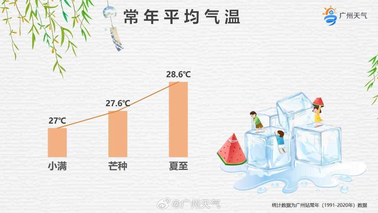 进入夏至时节,广州的气温继续攀升,常年平均气温比上一个节气芒种升高了1℃左右。