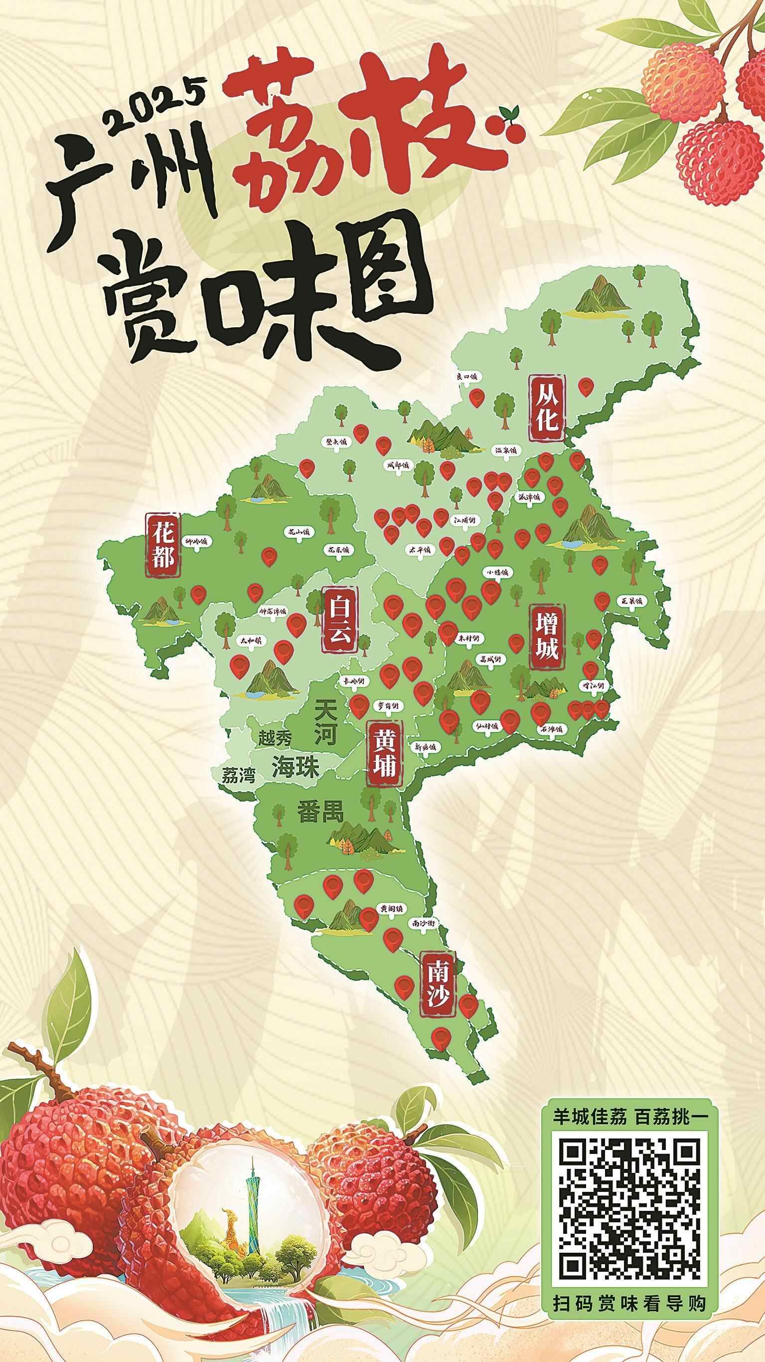 想吃上广州好荔枝,只需扫码开启2025年广州荔枝赏味图,就能踏上充满甜蜜与惊喜的荔枝之旅。
