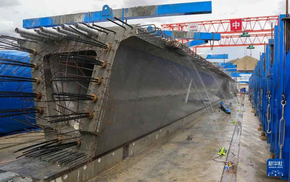 萨热路跨江大桥位于西藏山南市乃东区,是山南市"十四五"重大市政基础设施项目。6月18日,第一片箱梁养护强度达到设计标准,大桥建设进入架梁施工阶段。260余名施工人员日夜奋战在钢栈桥和两岸的桥梁结构建设中。
