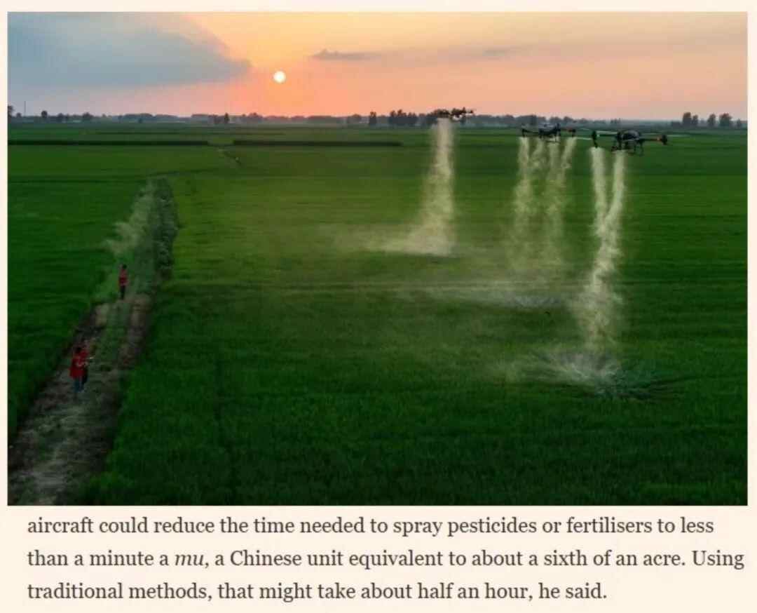 文章注意到无人机在中国的众多应用场景,并以农业举例称,无人机可将每亩土地喷洒农药或化肥的时间缩短至不到一分钟。而如果采用传统方法,这一过程可能需要大约半小时。此外,中国一些外卖平台也获批可利用无人机将外卖送至遍布城市各处的外卖取餐柜,另外一些网购平台也在部分配送路线上开始使用无人机。
