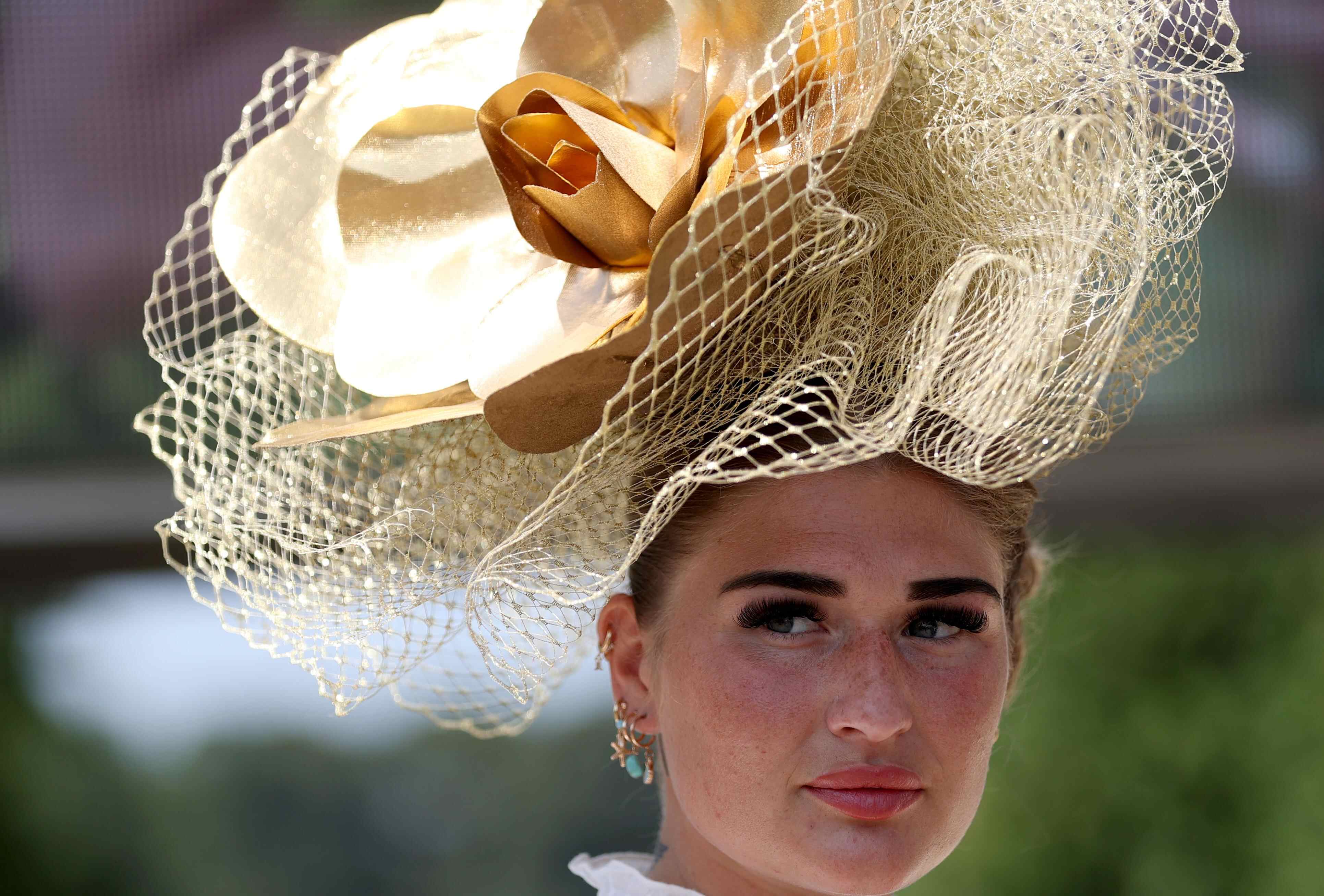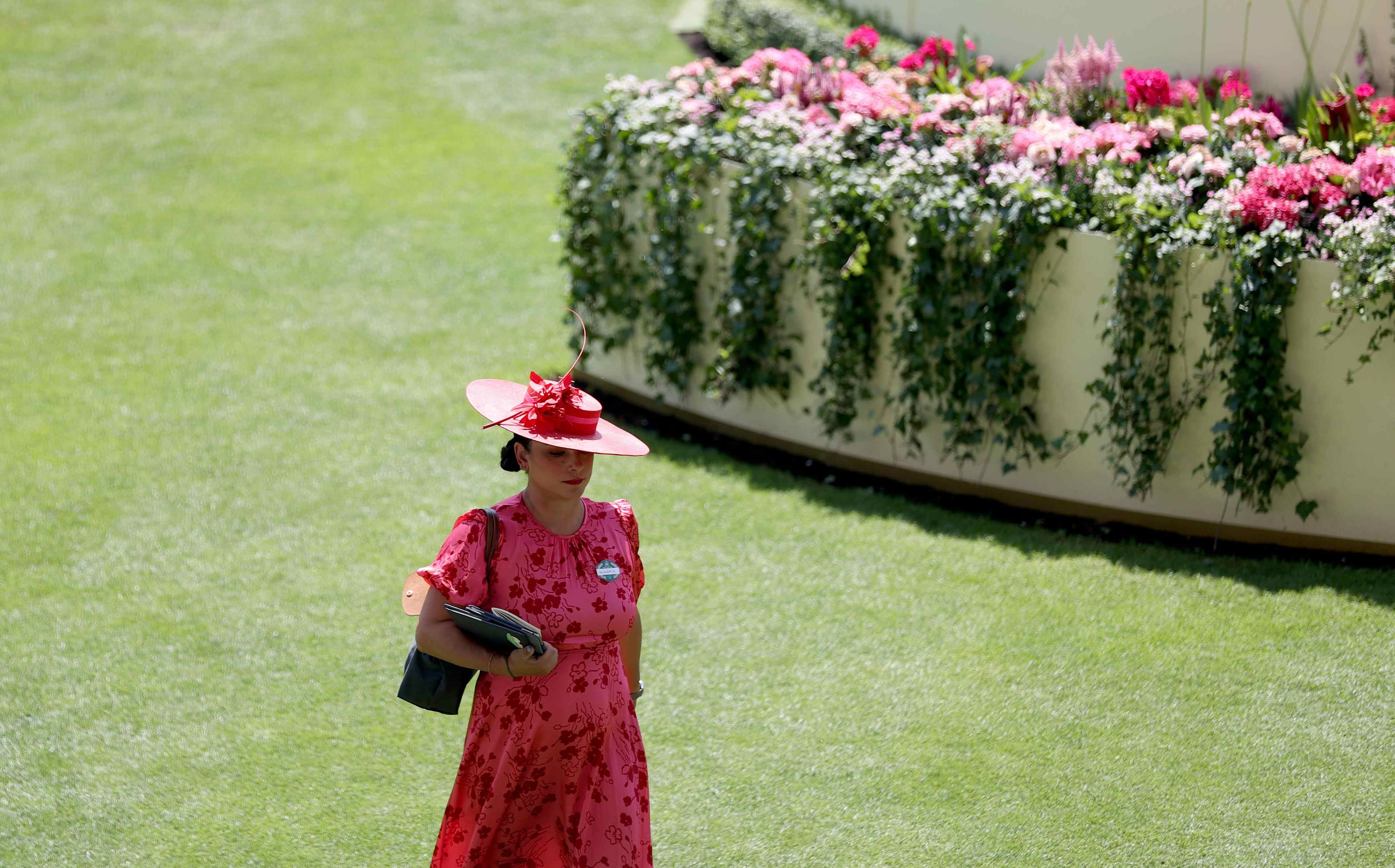 6月19日,在英国阿斯科特,一名女子出席皇家阿斯科特赛马会。
