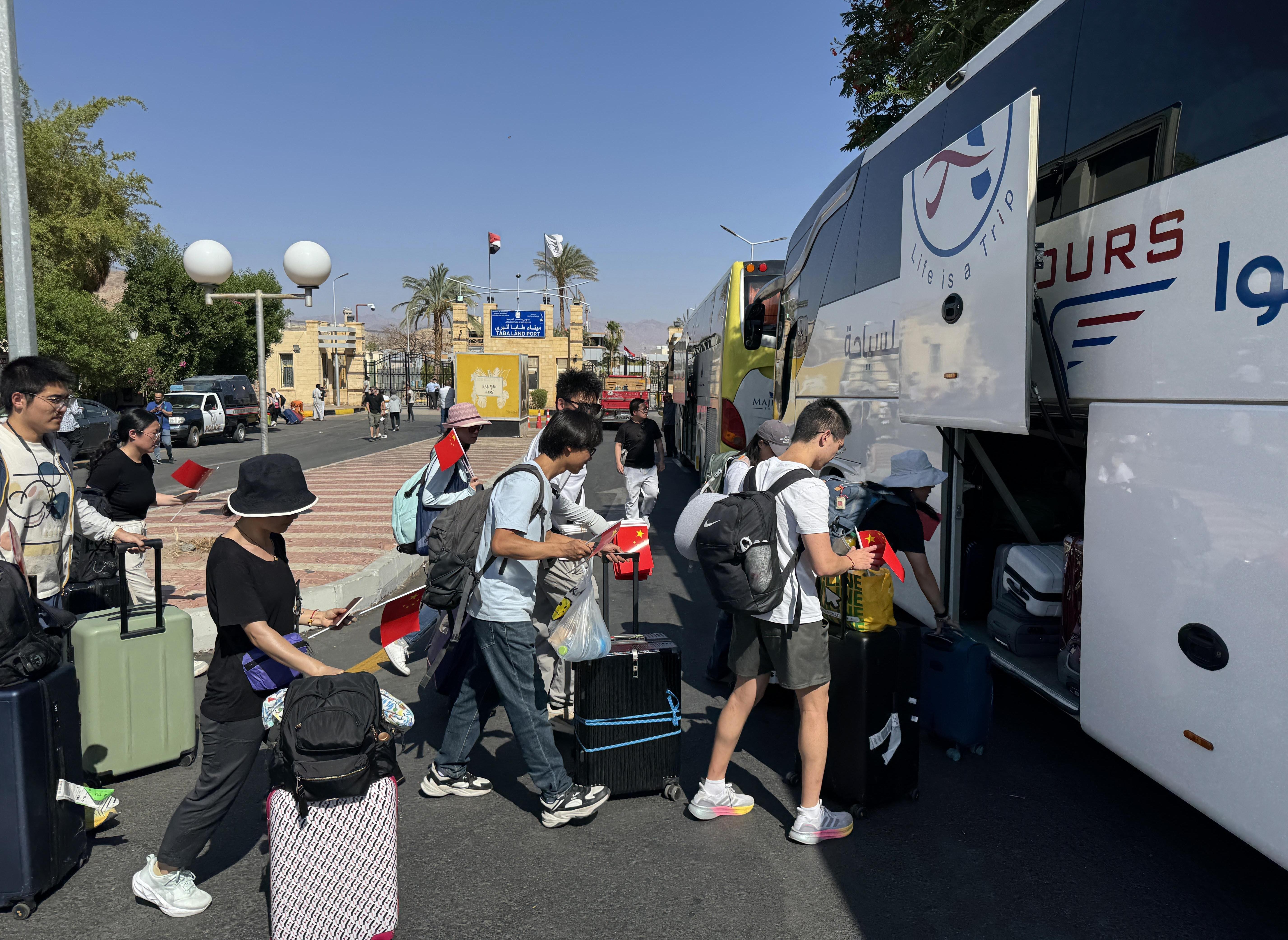119名中国公民19日经埃及南西奈省塔巴口岸从以色列撤离至埃及境内。