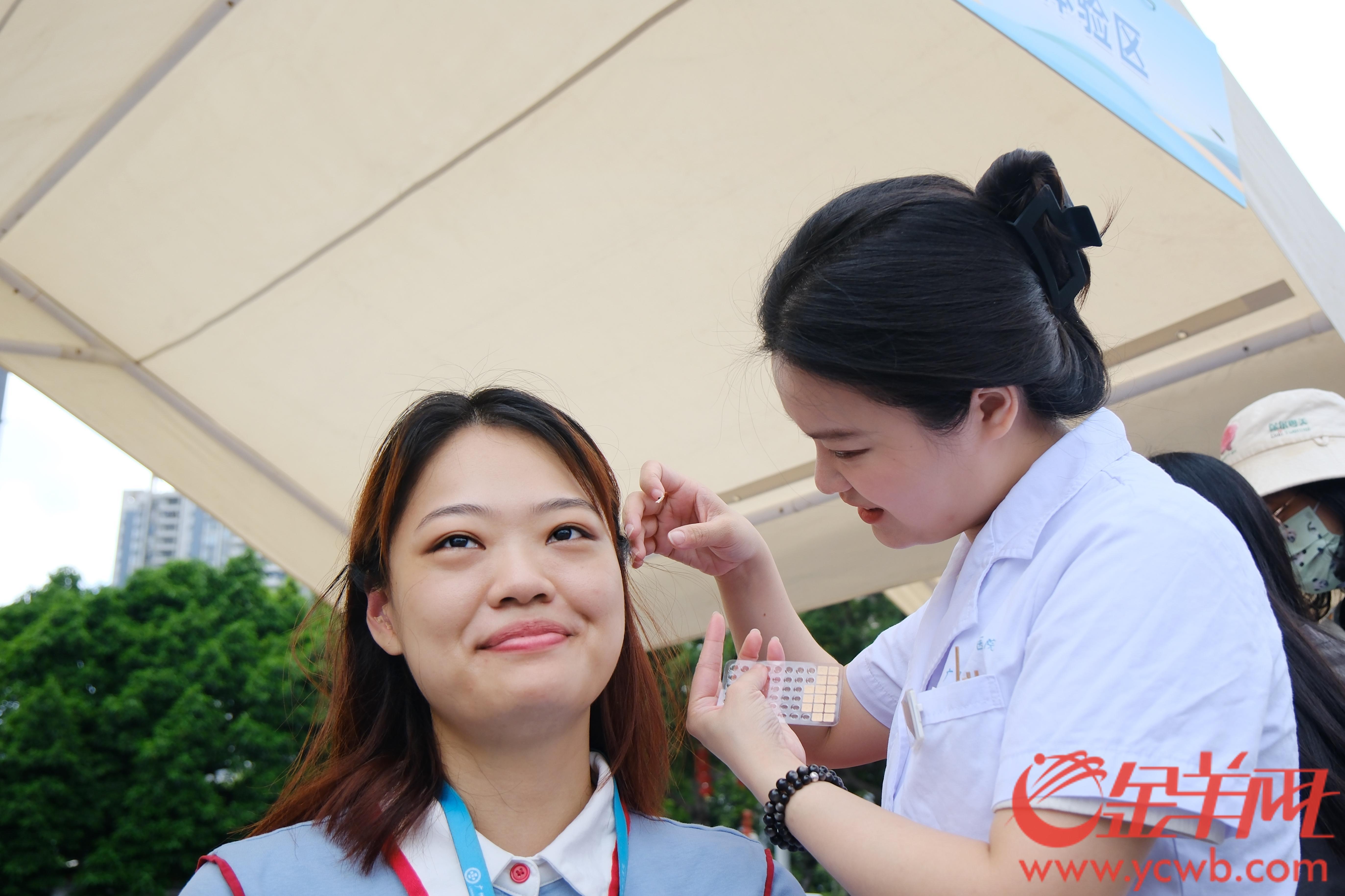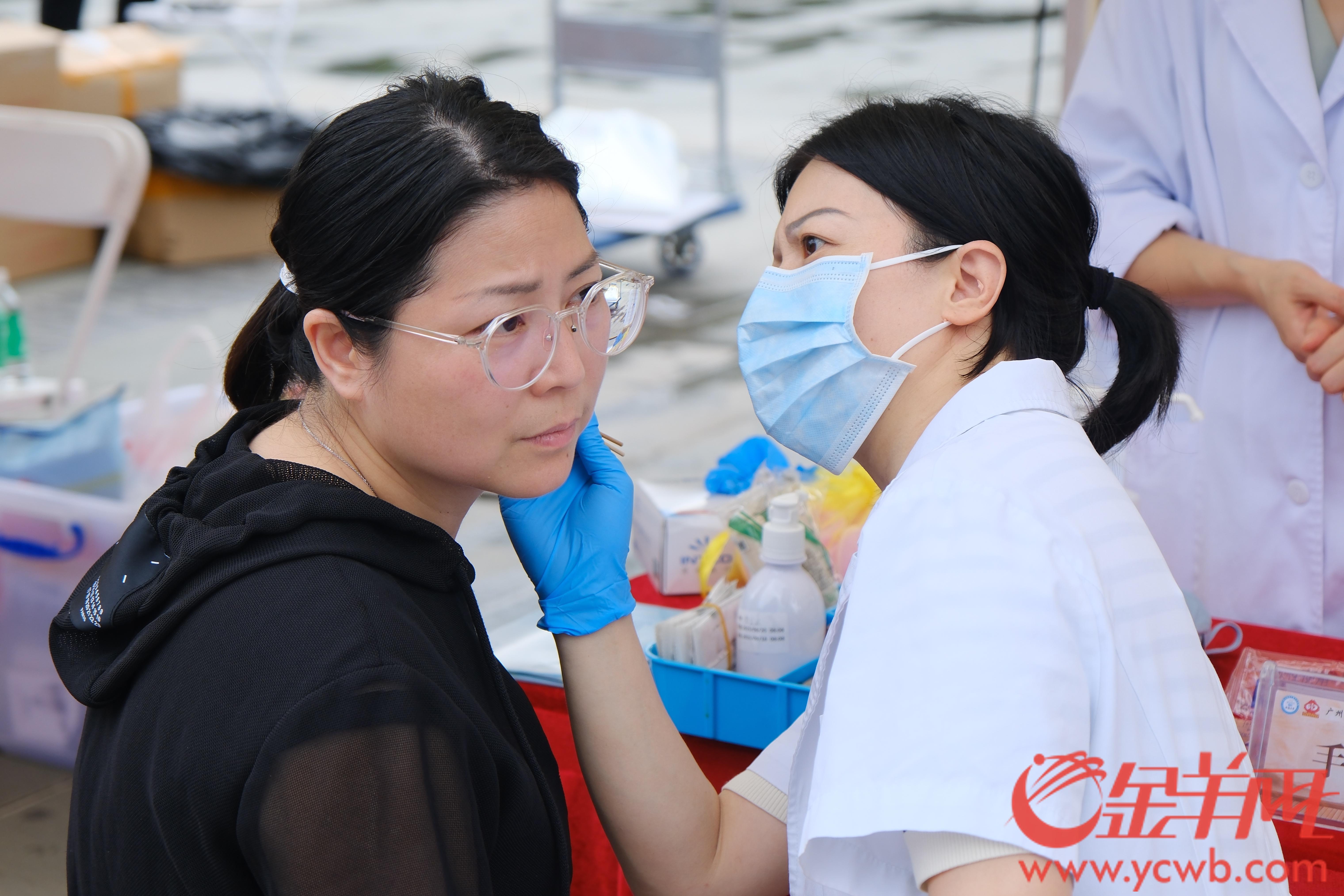 在中医特色“减重”技术体验区,荔湾中心医院展示了贴耳穴、埋线等中医适宜技术。