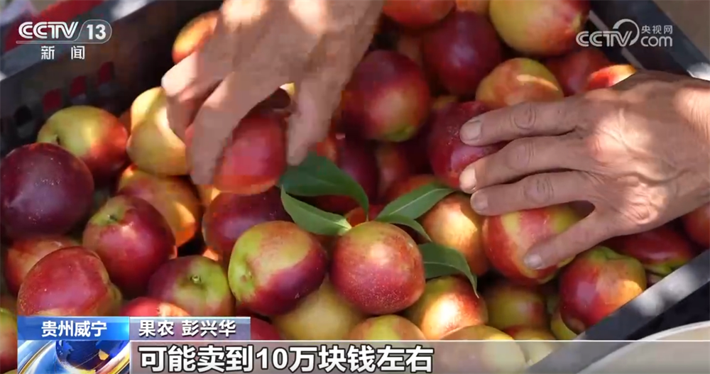 在威宁县龙场镇,4000余亩油桃挂满枝头,果农们正忙着采摘、分装。
