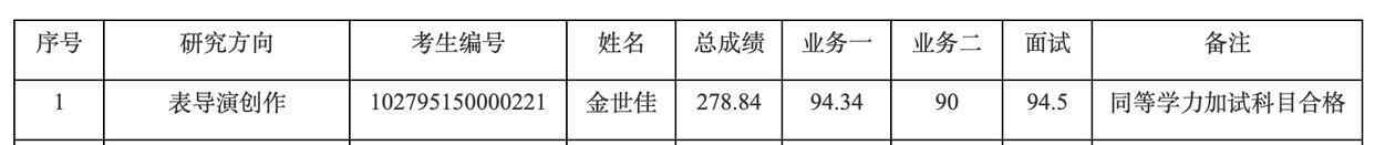 6月20日,上海戏剧学院招生网公布《2025年上海戏剧学院博士研究生拟录取名单》,金世佳以278.84分的总成绩,成功被录取。但遗憾的是,并未在上面找到黄晓明的名字。