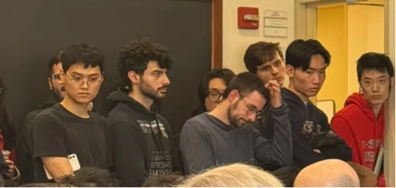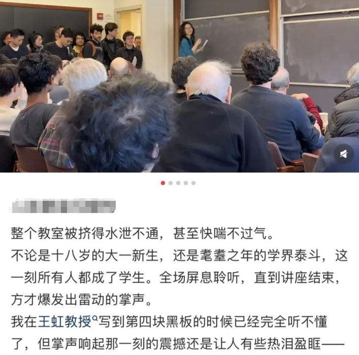 许多听课的学生在社交媒体上发布了上课时的图片,表示这是“数学界的顶级画面”,尽管自己后面已经听不懂了,但仍屏息聆听。讲座结束后,全场爆发出热烈的掌声。