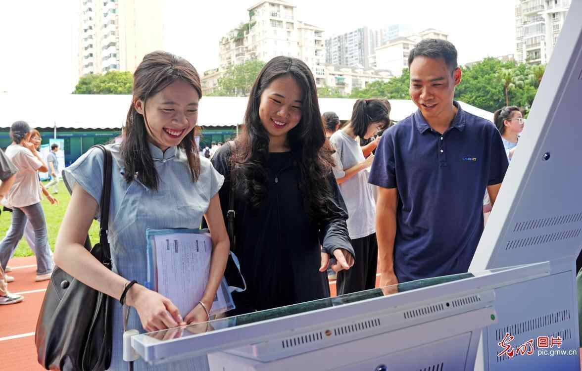 2025年6月17日,由安徽省亳州市人力资源和社会保障局主办的2025届毕业生校园双选会在亳州职业技术学院举行,吸引了107家优质企业现场招贤纳士,共为毕业生提供就业岗位9102个,涵盖医药健康、智能制造、信息技术、商贸服务、文化教育、建筑工程等领域。图为毕业生在双选会上寻找适合自己的就业岗位。(刘勤利摄/光明图片)
