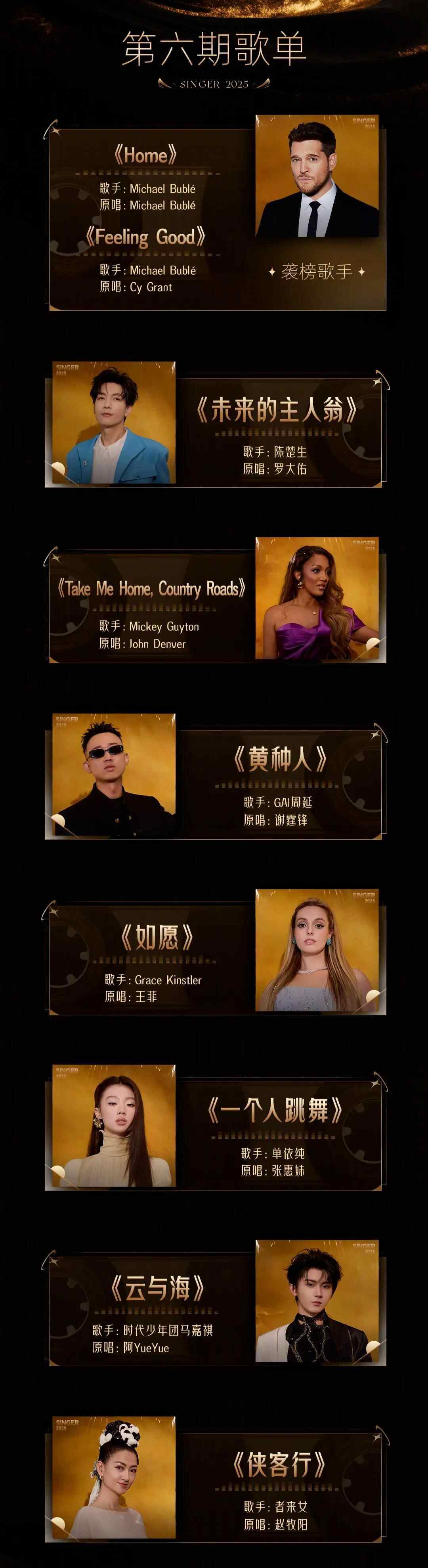 6月20日晚,《歌手2025》第六期揭榜赛播出,陈楚生终于拿到《歌手2025》第一,麦可布雷袭榜成功,本场排名最末的马嘉祺淘汰。