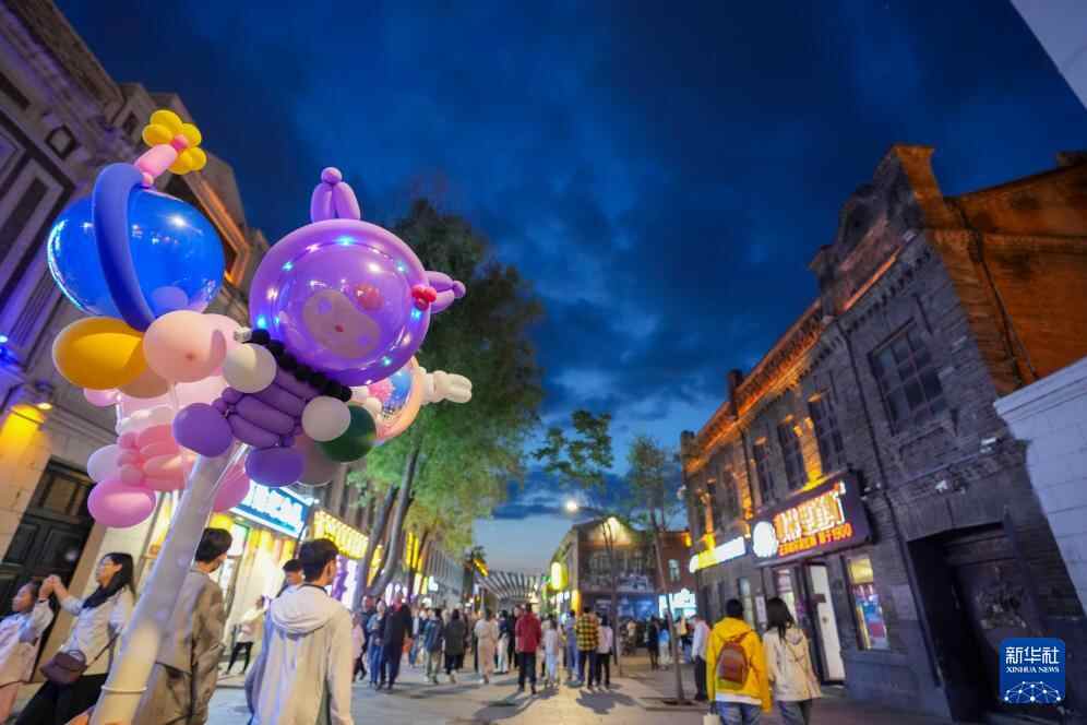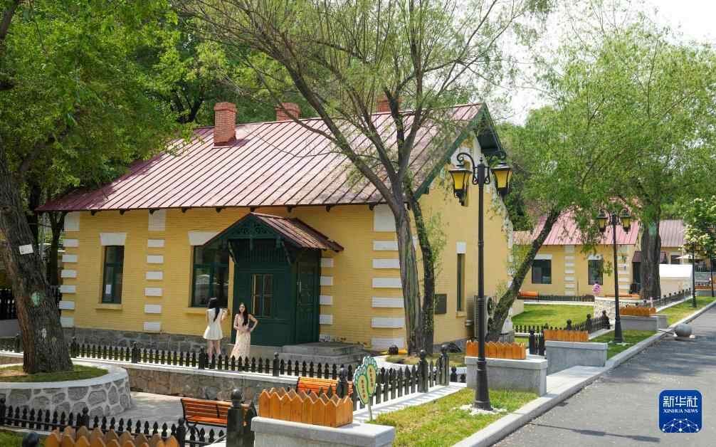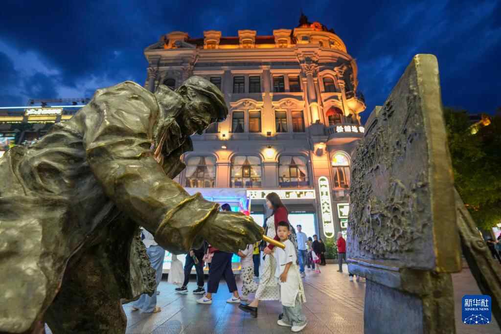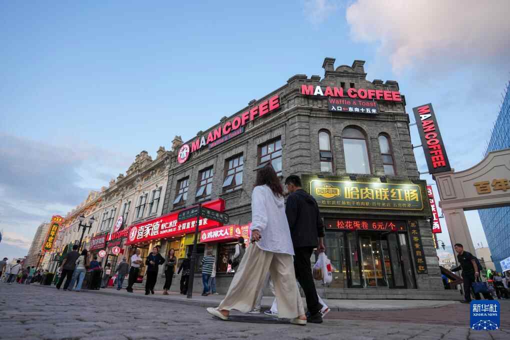 人们在位于哈尔滨市道外区的中华巴洛克历史文化街区游玩(2025年6月7日摄)。