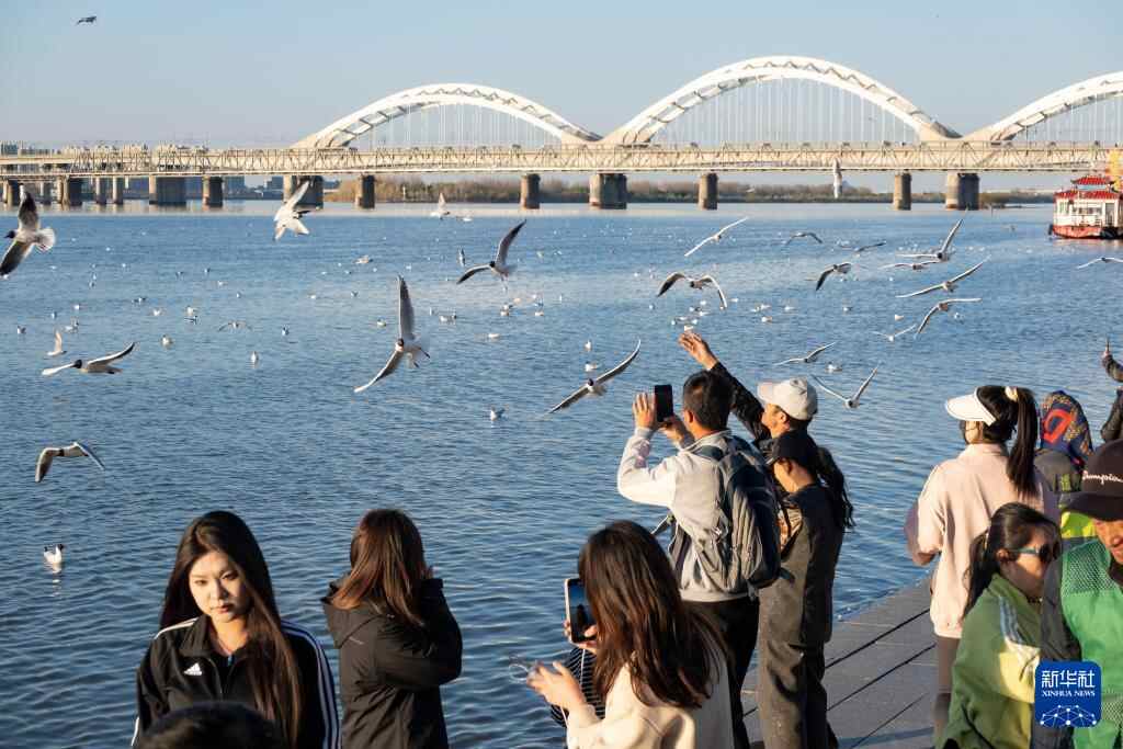 人们在松花江哈尔滨段江畔享受闲适时光(2025年4月22日摄)。