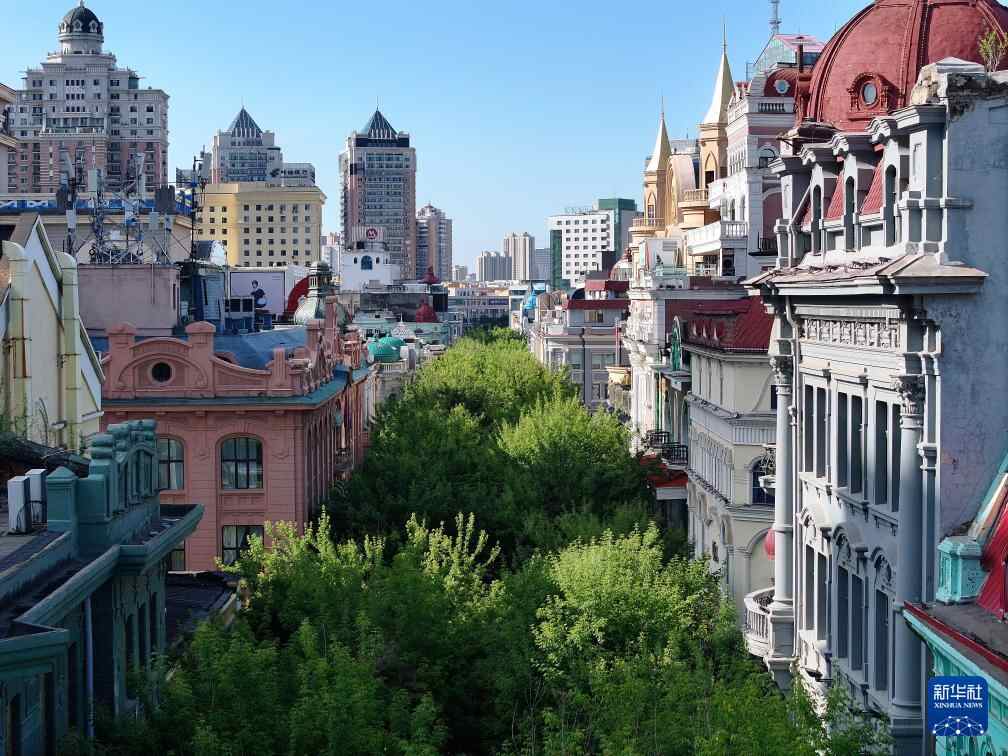哈尔滨市中央大街(2025年6月11日摄,无人机照片)。
