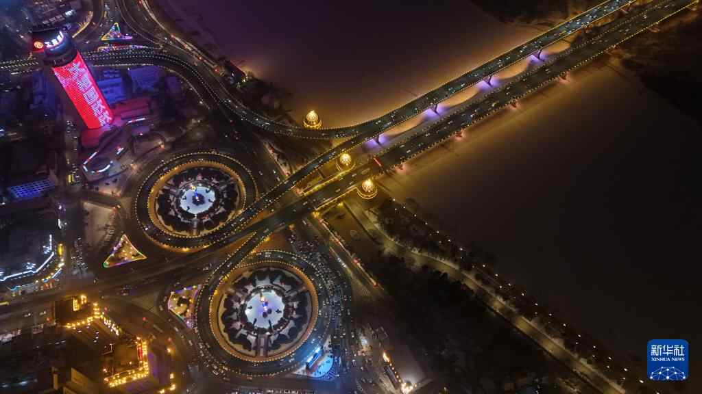 哈尔滨松花江公路大桥夜景(2025年1月26日摄,无人机照片)。