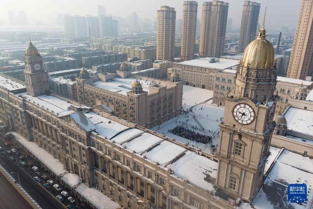 这是位于哈尔滨市道外区的哈药六厂主楼(2024年1月17日摄,无人机照片)。哈药六厂主楼为欧式风格,雄伟壮观,被网友称为“东北卢浮宫”,成为哈尔滨旅游的热门打卡地。