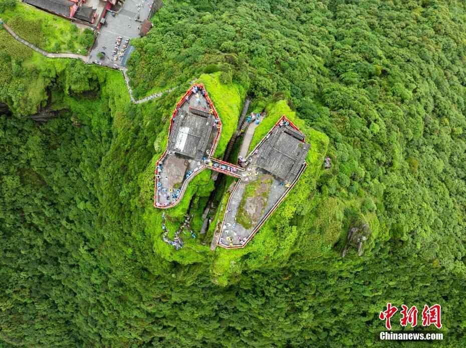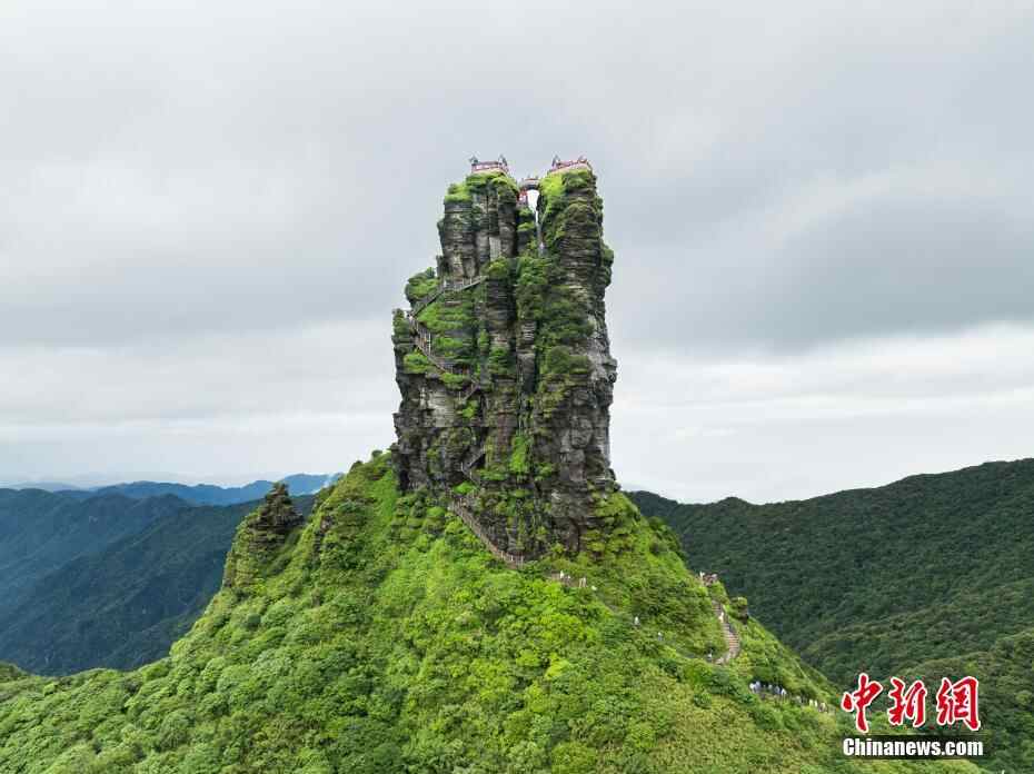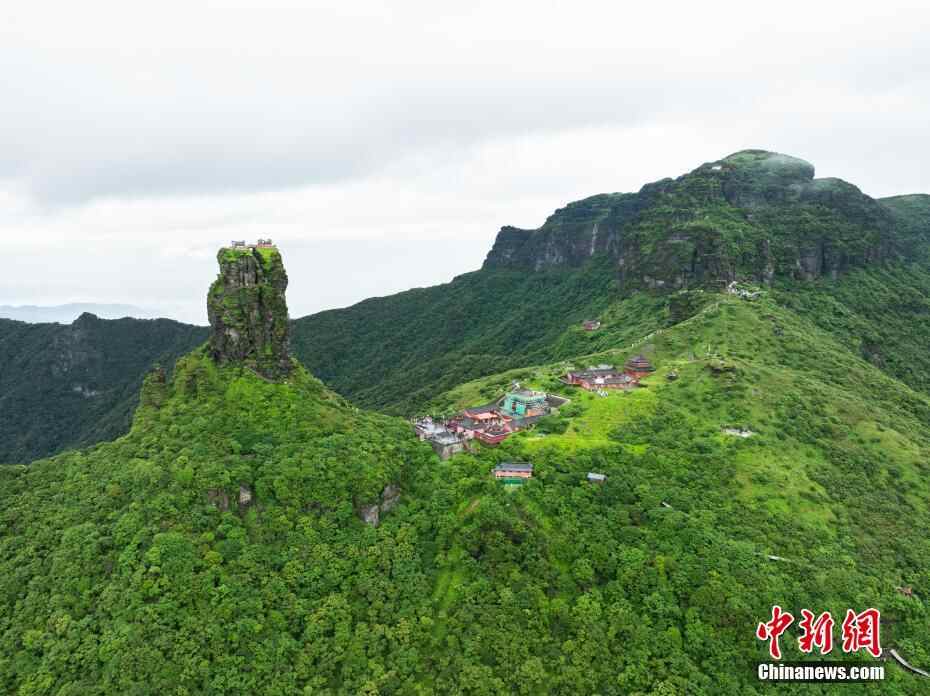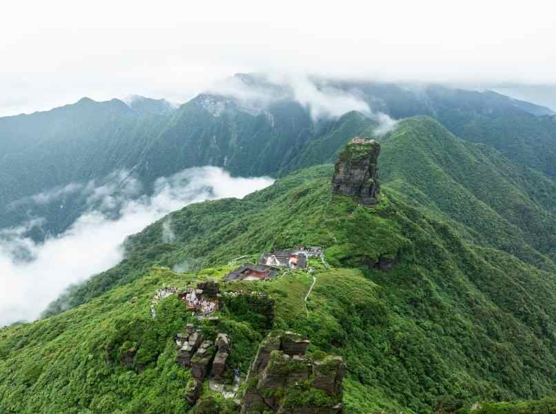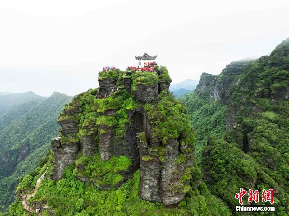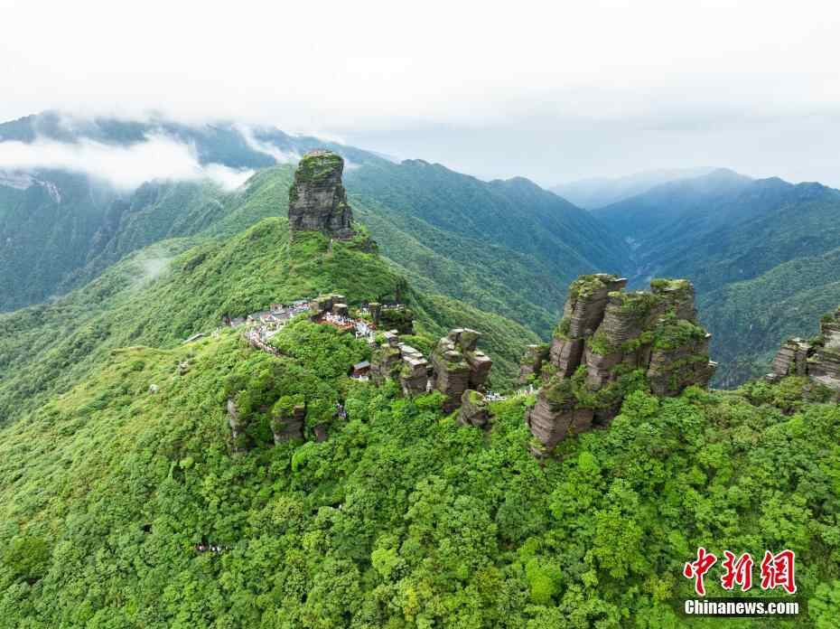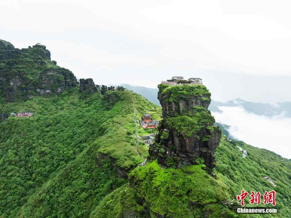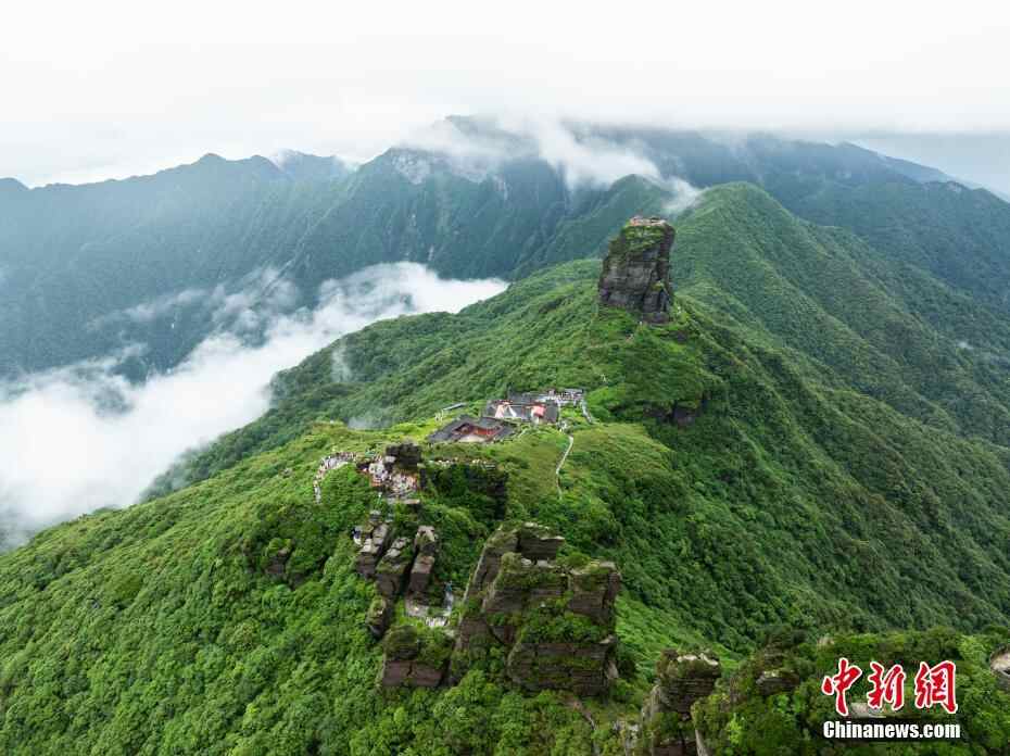 6月26日,贵州铜仁,航拍雨后梵净山青山翠绿,云雾弥漫,宛如仙境。(无人机照片)