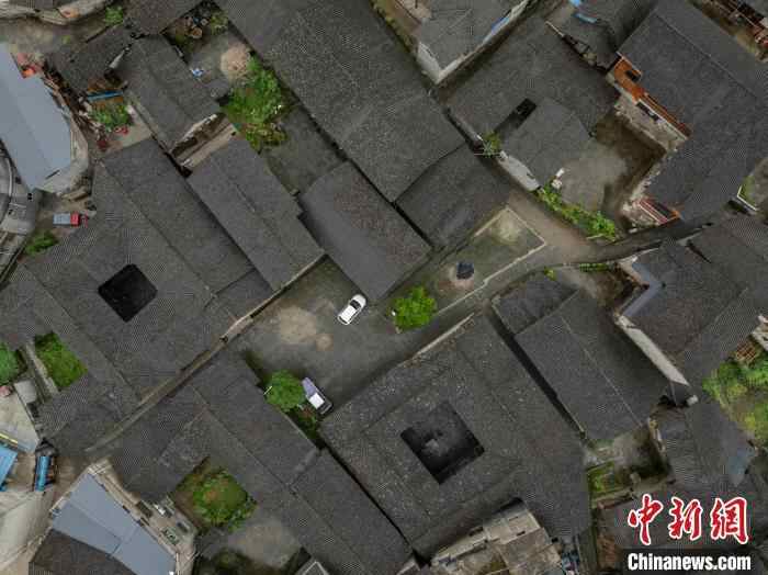 图为6月26日航拍“中国土家第一村”江口云舍村的土家桶子屋,土家族桶子屋是江口县最具地方民族特色的古建筑,它以干栏式三合院、四合院为主。2019年,云舍村土家桶子屋被列入贵州省级非物质文化遗产名录。(无人机照片)唐哲 摄
