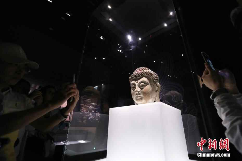 6月26日,宁夏银川,在西夏陵博物馆展出的1990年宁夏贺兰县宏佛塔出土的佛头像。西夏陵博物馆是一座以西夏陵为背景,全面集中展示西夏历史文化的专题博物馆。