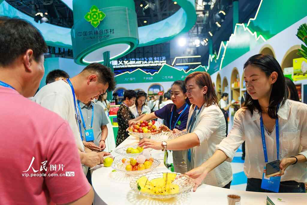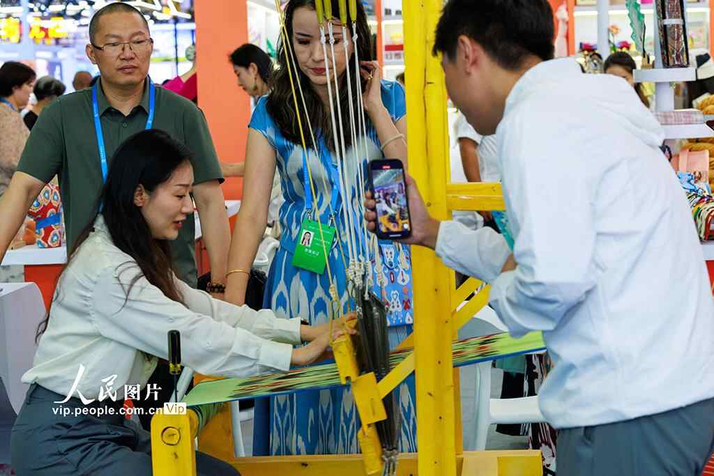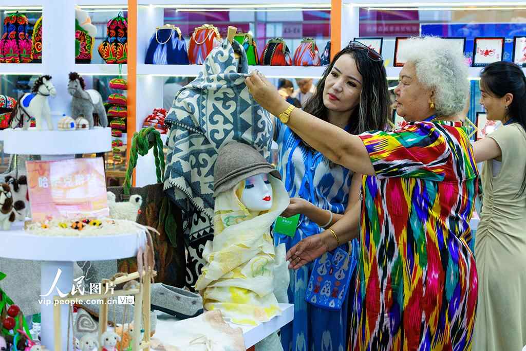 本届商博会聚焦服务新疆“十大产业集群”建设核心任务,设置14万平方米室内外展区,来自50个国家和地区的2800余家企业参展参会。孙振嵩摄(人民图片网)