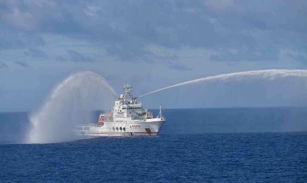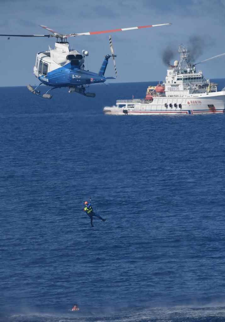 6月26日,“三沙市2025年海上应急救援综合演练”在西沙永兴岛附近海域举行。此次演练共投入15艘船艇、2架救助直升机、200余名救援人员。新华社记者 赵颖全 摄
