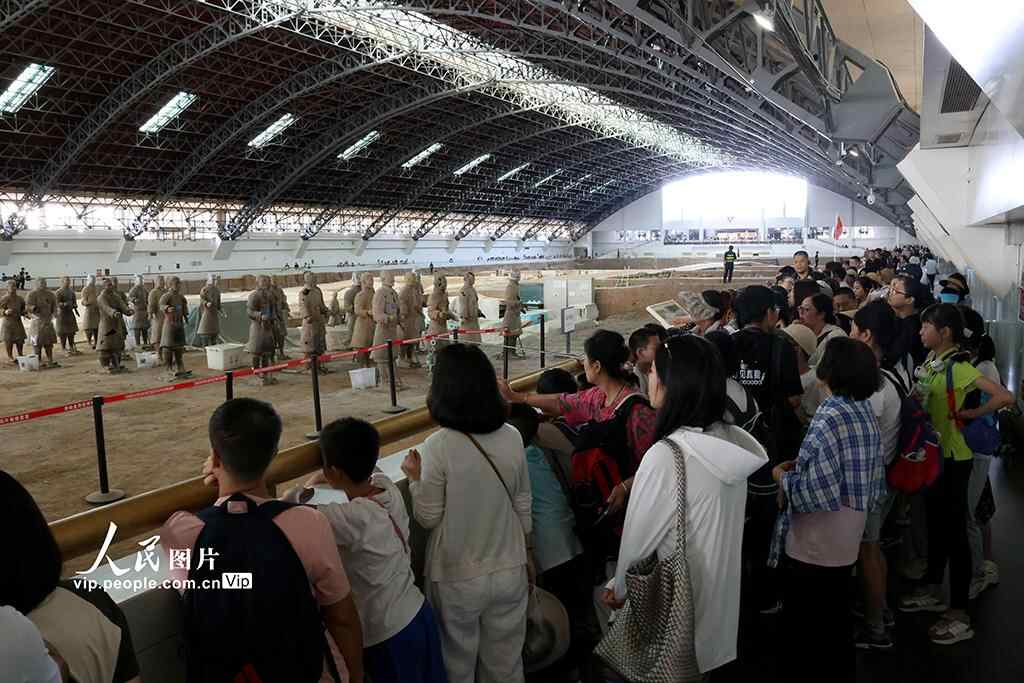 2025年6月26日,位于陕西省西安市临潼区的秦始皇帝陵博物院内游人如织。游客近距离观赏兵马俑阵列、品鉴主题展览,在沉浸式体验中感受文物的艺术震撼与历史厚重。王旺旺摄(人民图片网)