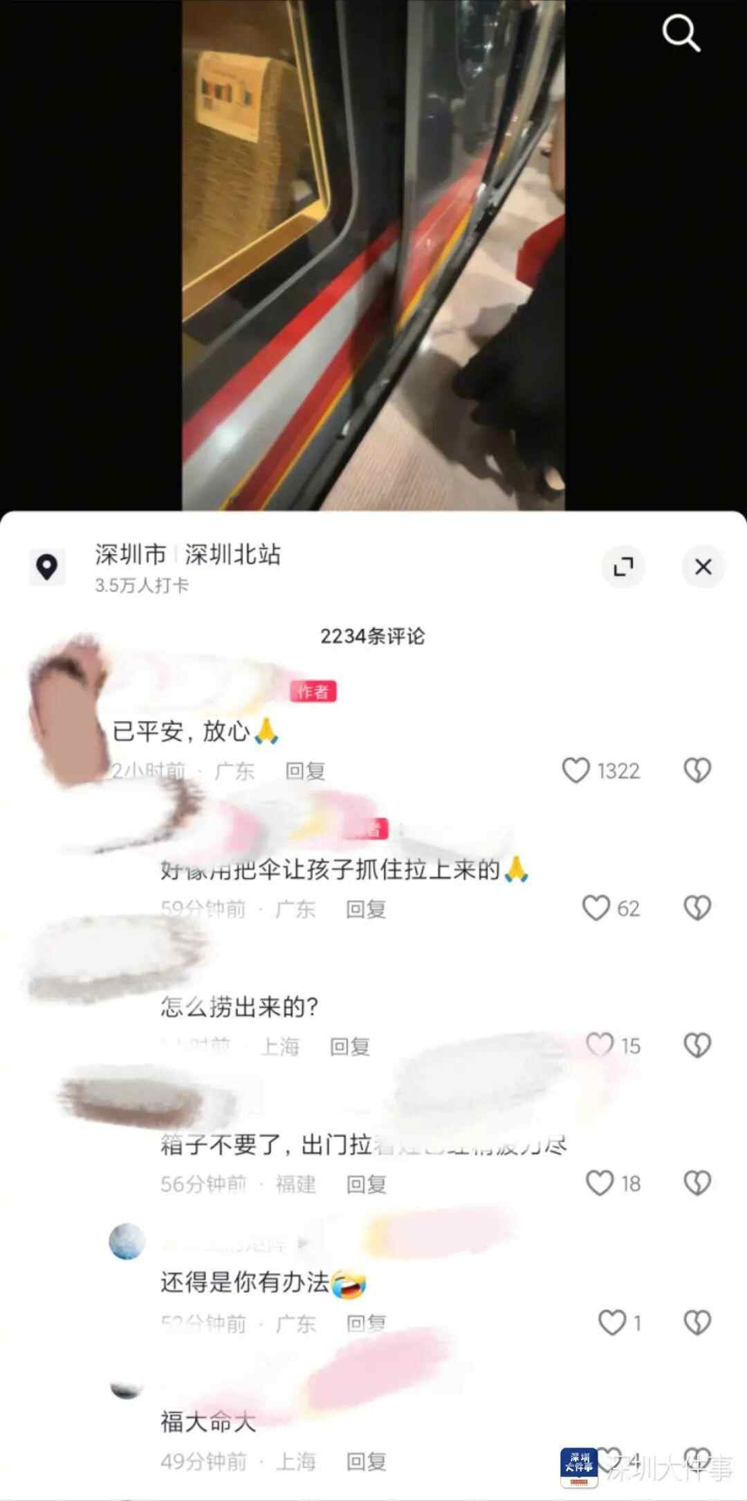 记者了解到,深圳北站方面已关注到网传视频内容,并证实26日晚确有此事发生。女童为列车到站期间不慎掉入缝隙中,很快就平安救出,无大碍。更为具体的情况,深圳北站方面目前还在进一步了解中。