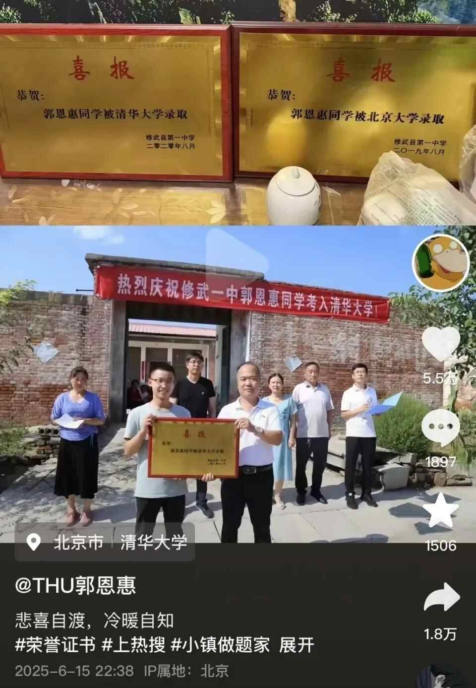 近日,来自河南焦作的郭恩惠 ,因为以669分考入北大医学院后决定退学,又以716分考上清华大学引发关注。