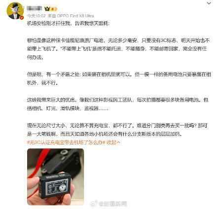 近日,有网友称在上海虹桥机场T2航站楼相机电池不能上飞机。