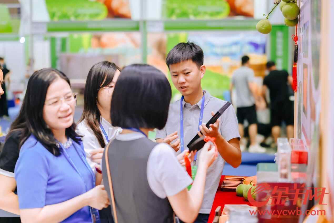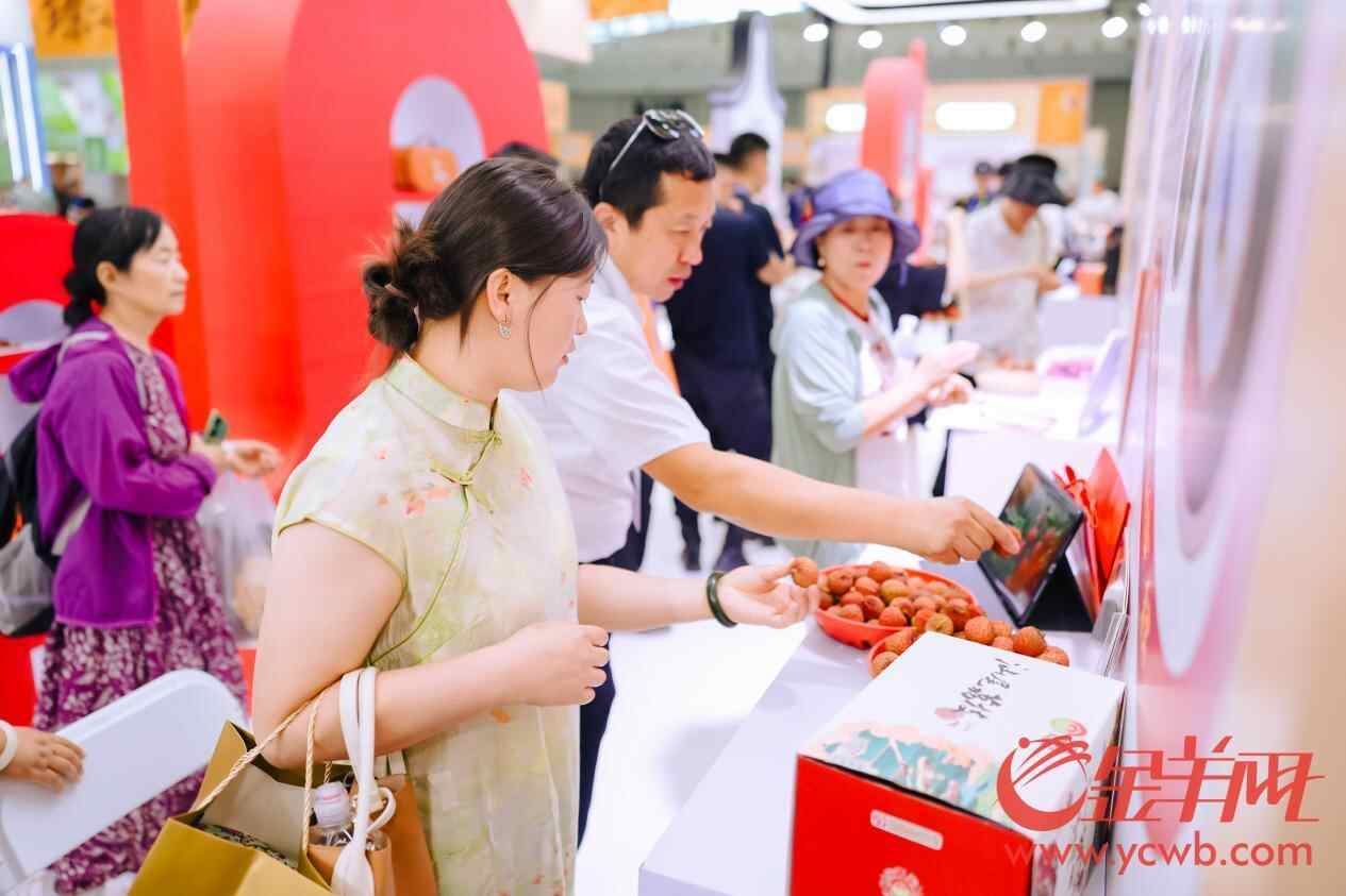 除荔枝外,凤凰单丛、化橘红、龟苓膏、狮头鹅等岭南地道风物同样抢眼,吸引客商络绎不绝地挑选产品、询问价格、对接货源。