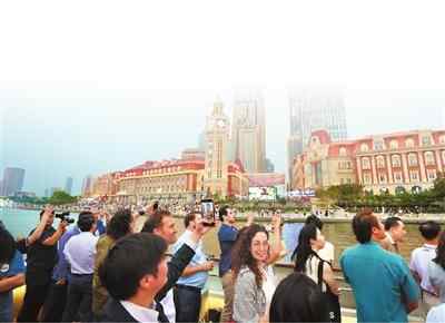 2025天津夏季达沃斯论坛嘉宾乘坐海河游船。 记者 孙立伟 摄