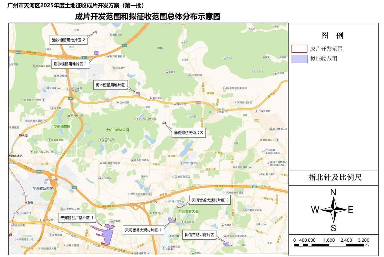 近日,《广州市天河区2025年度土地征收成片开发方案(第一批)》(以下简称《方案》)顺利获得批复。《方案》共划定8个片区,涉及天河区4个街道,总面积44.8836公顷,拟实施征收集体土地面积39.8047公顷,将有力保障广棠片区、大观村城中村改造、2112工园等重点项目及吉山、柯木塱、渔沙坦村留用地连片开发需求,为天河区高质量发展提供强大助力。